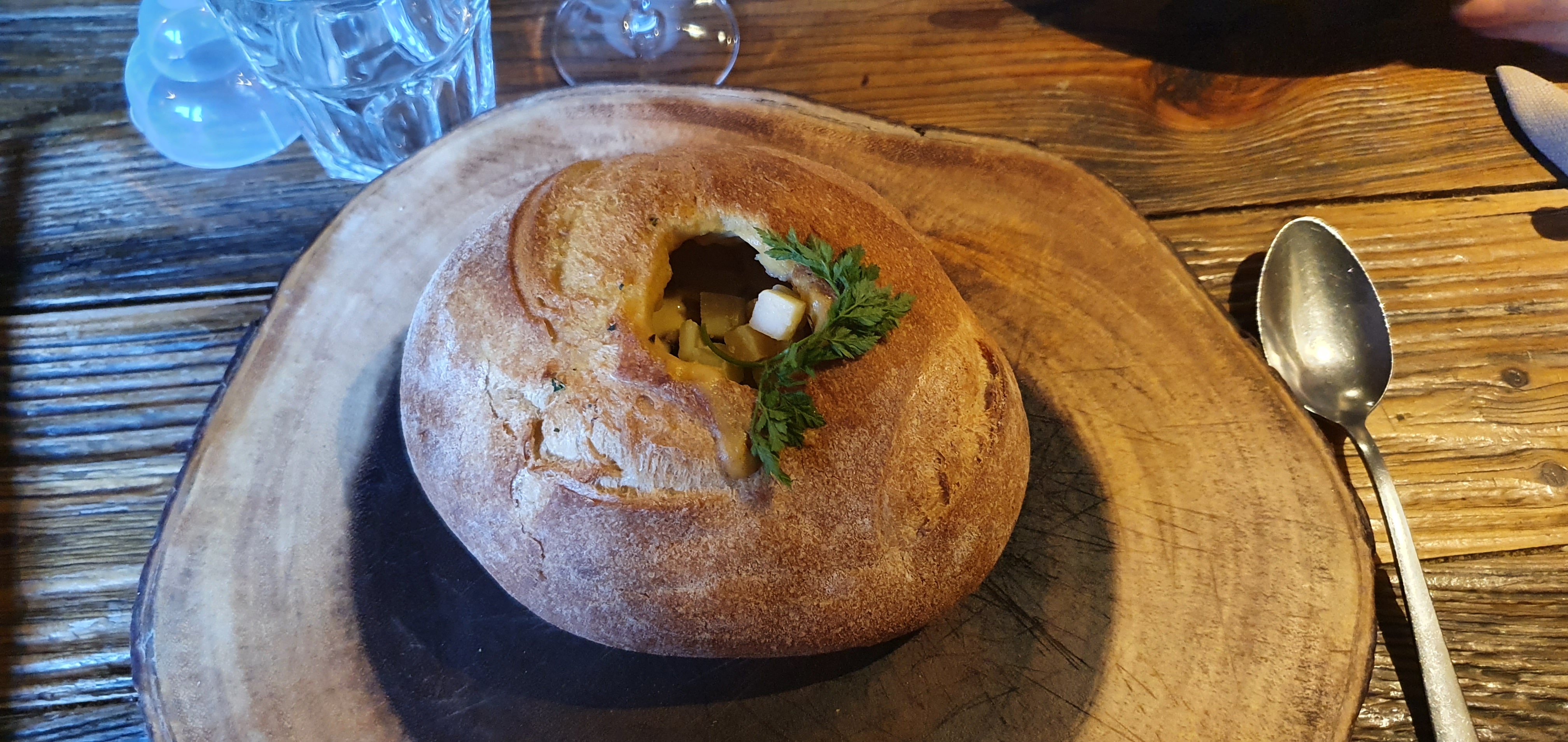 Nourriture délicieuse et un lieu à découvrir après Covid a l'ambiance Chalet Cosy avec en plus sa petite terrasse l'été sur le torrent qui passe dans Megève