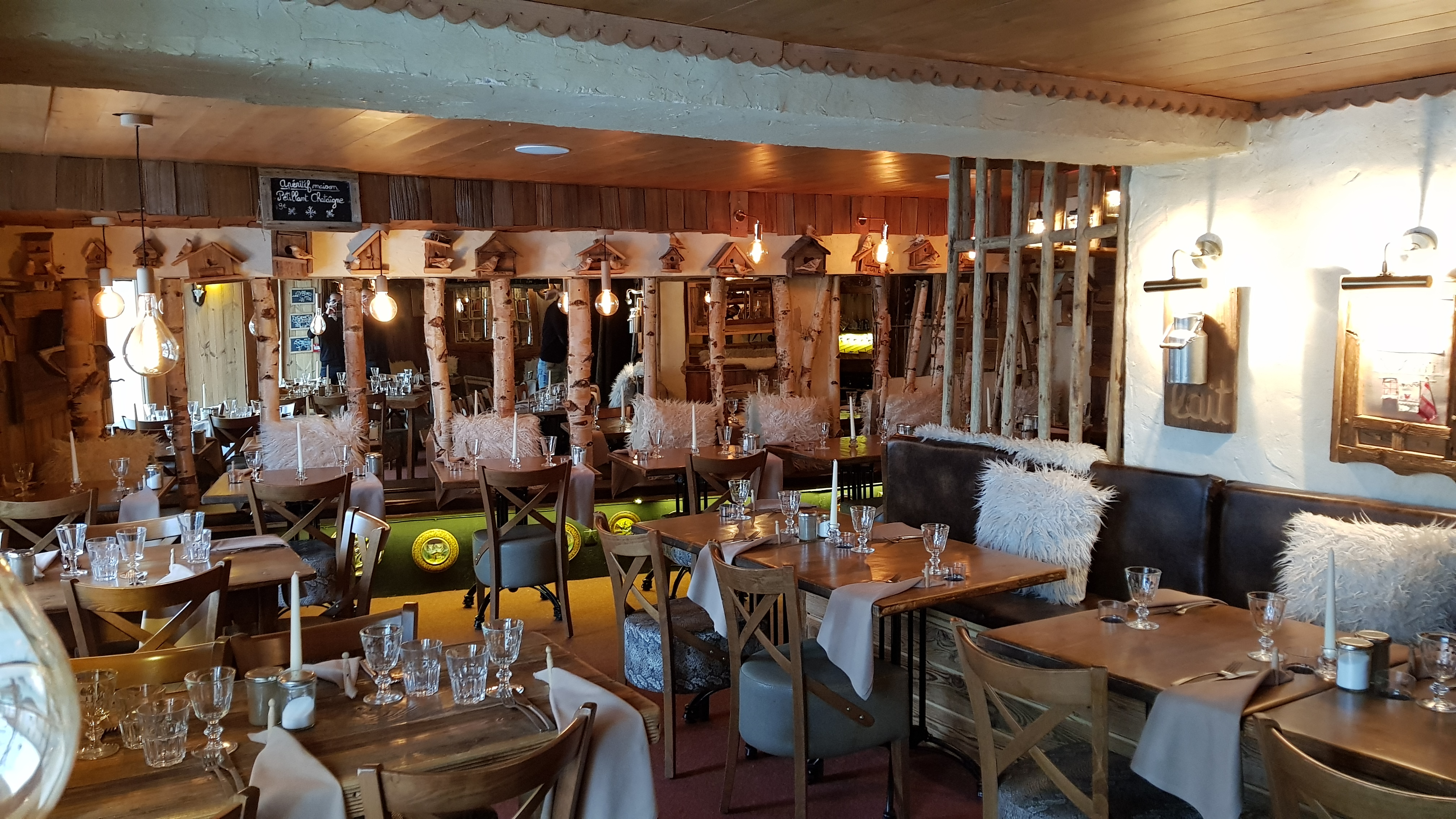 La décoration est montagnarde, alliant modernité et cachet alpin. Il faisait froid. J’ai pris le velouté de potiron et bacon il était bon mais sans plus puis j’ai pris le risotto à la truffe qui n’avait pas de goût dégueulasse. En dessert j’ai pris les madeleines au chocolat qui étaient miniatures et bonnes. Le restaurant est décevant et le rapport qualité-prix n’est pas intéressant. Le service est pas mal. Ne soyez pas surpris si aux toilettes vous croisez un ours ...