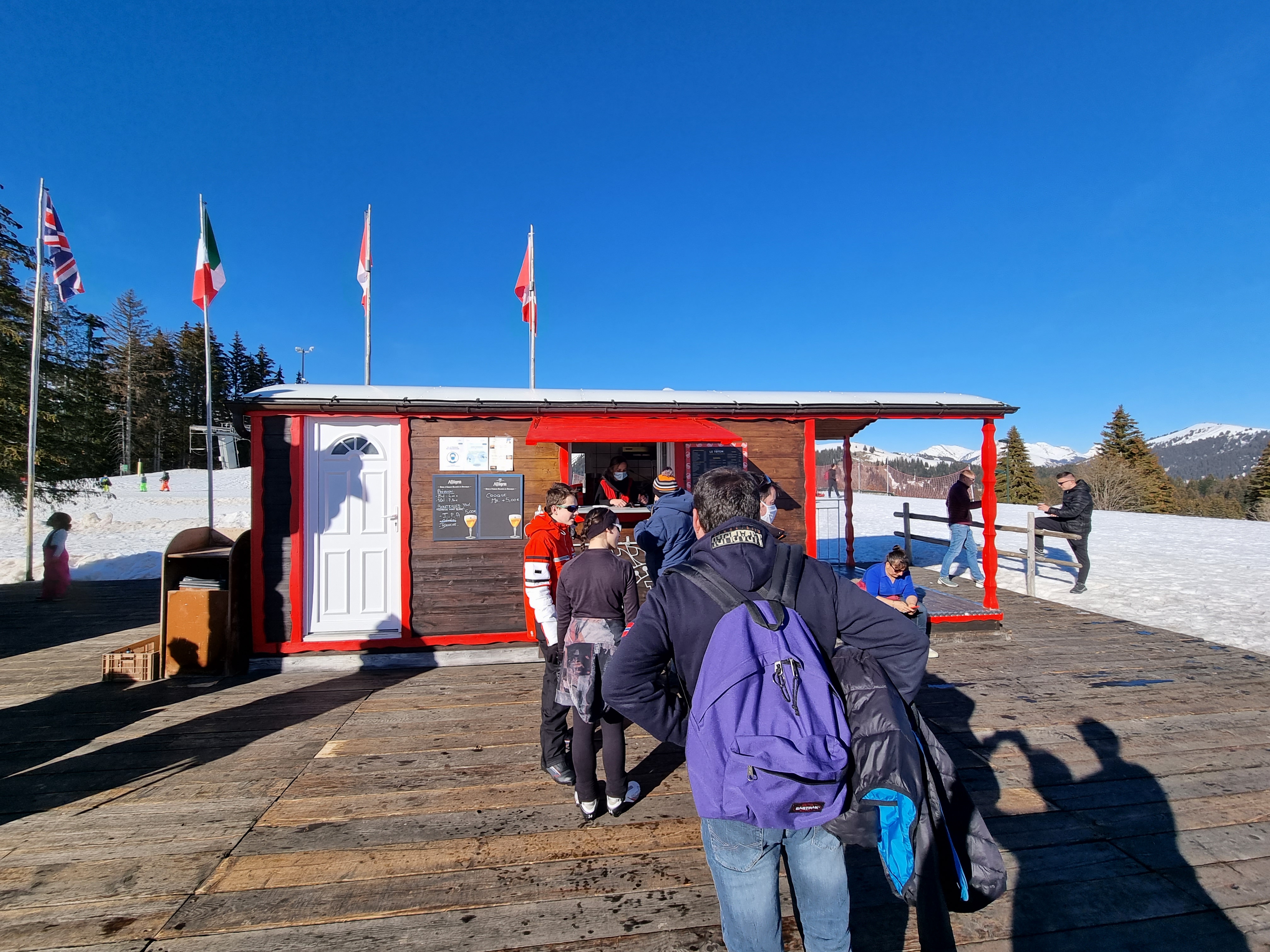 Rien de mieux que de commencer la journée sur les pistes avec quelques crêpes Totem. Le personnel est super sympa et veille à ce que vous receviez votre commande exactement comme vous l'aimez. Plus tard dans la journée, je suis revenu chercher le panini avec des frites et c'était la meilleure chose qui soit, surtout après une journée complète sur les pistes. Je le recommande totalement, ne le manquez pas!