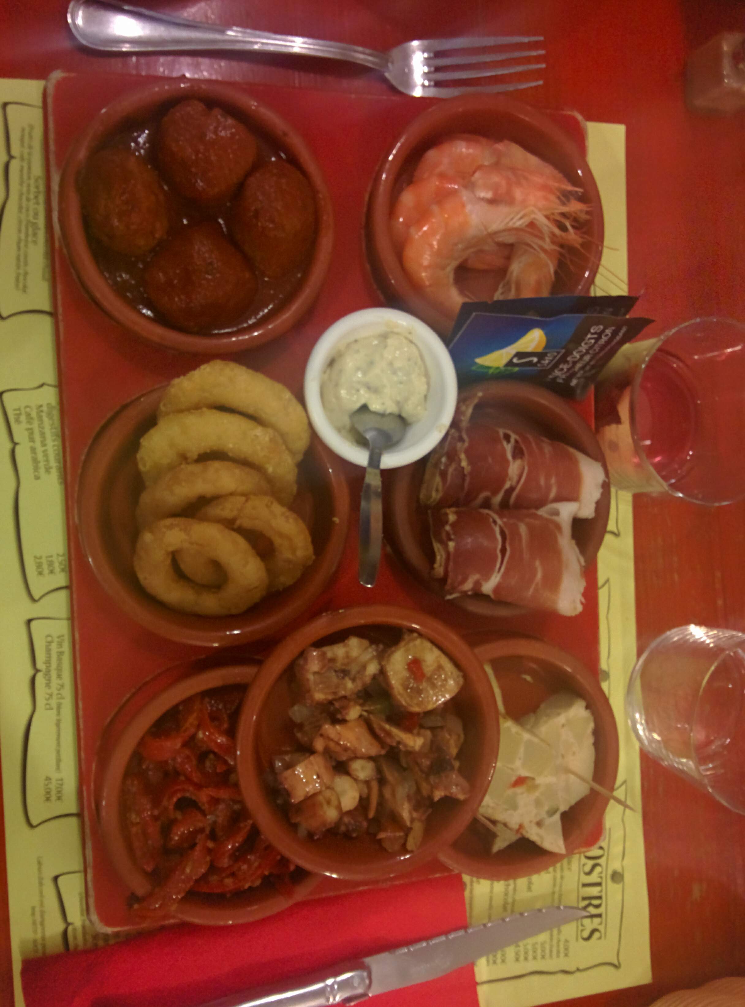 En entrée, des tapas de toutes les formes et pour tous les gout à volonté. C'est bon et vraiment le rapport qualité-prix au top. Pensez à réserver !