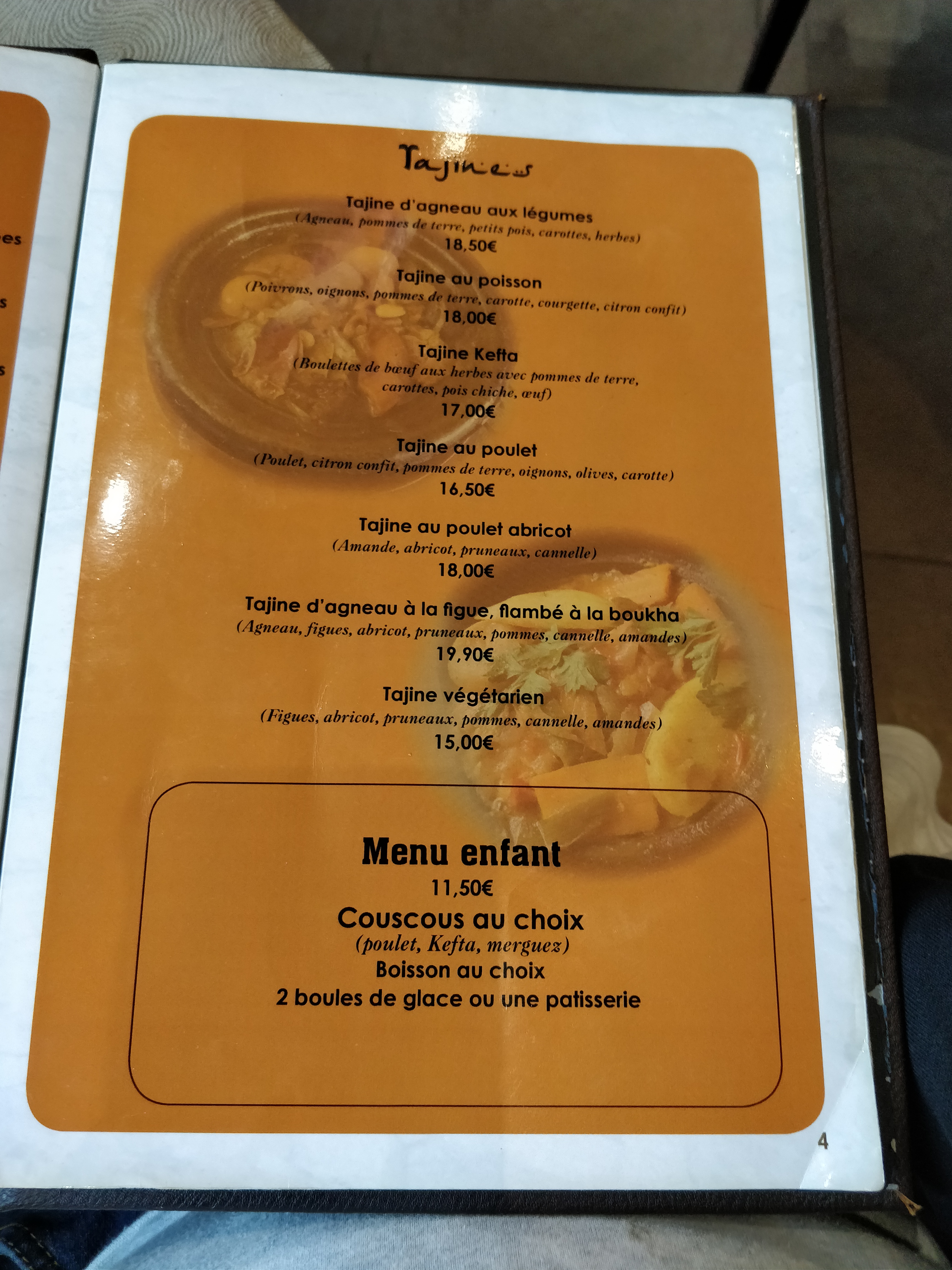 Couscous et tajines succulents, le service est de plus très rapide, et le prix est largement justifié (et correct) au vu de l’opulence des plats. Léger bémol j’ai trouvé sur les tajines végétariennes, elles auraient mérité d’autres légumes en plus des patates, mais elles n’en restent pas moins fondantes sous le palais 🤤. Petit - aussi pour les glaces pas très qualitatives, autant goûter de vrais desserts, corne de gazelles et autres ;)