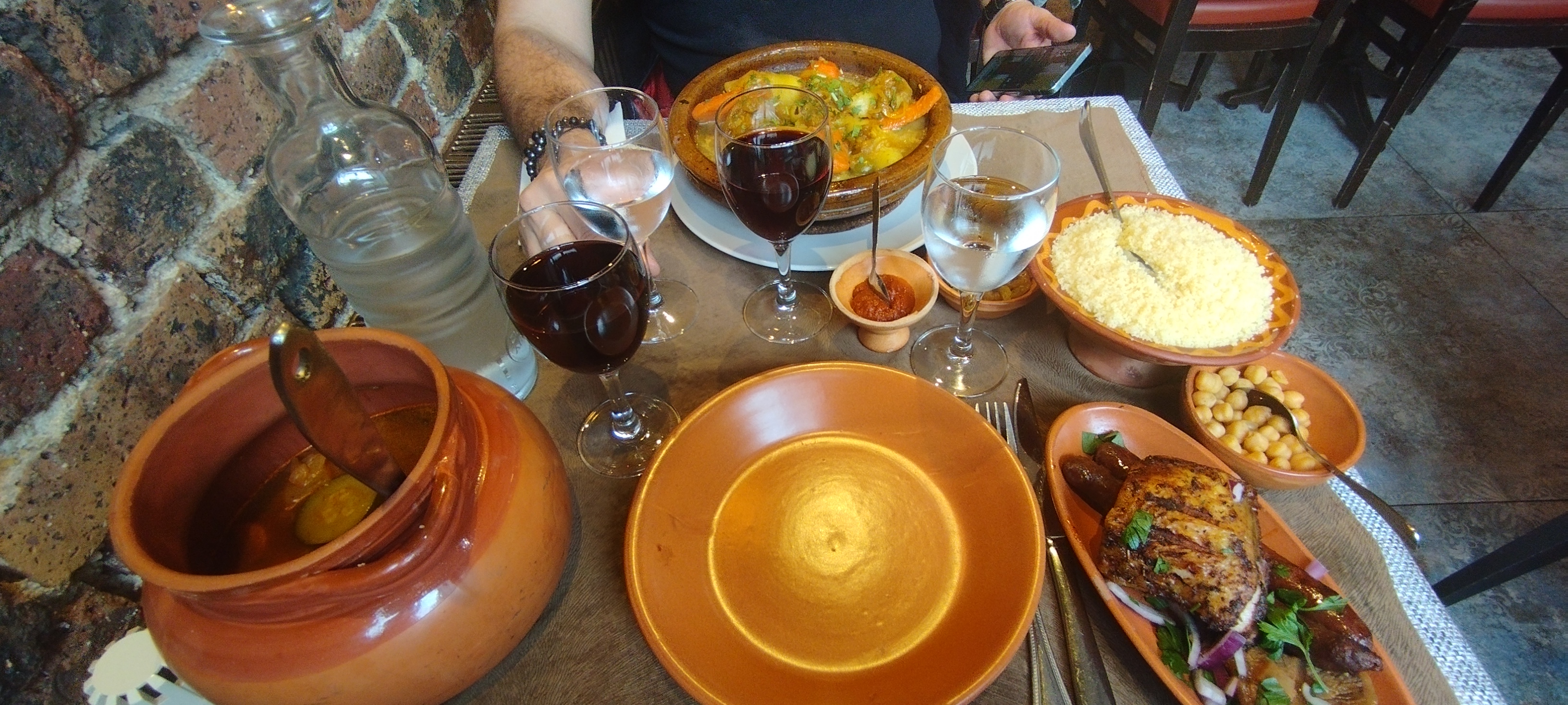 Super endroit pour la cuisine nord-africaine. Thé à la menthe fabuleux et essayez le vin algérien. Qui savait??