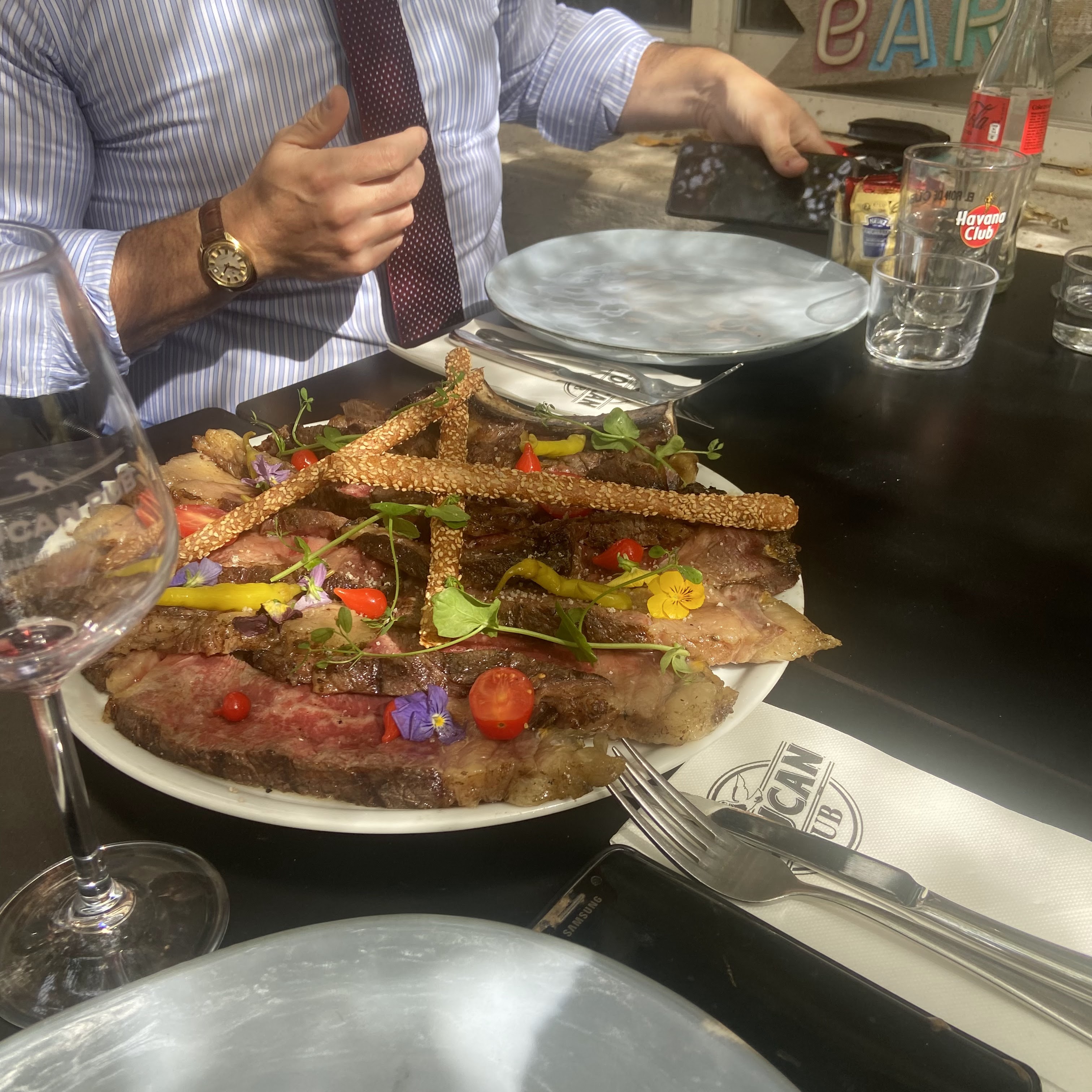 Repas entre copains toujours sympa. Bonne cuisine, grillade au feu de bois. Belle carte des vins, mais le prix du vin reste élevé. Belle cave à rhum et whisky.
