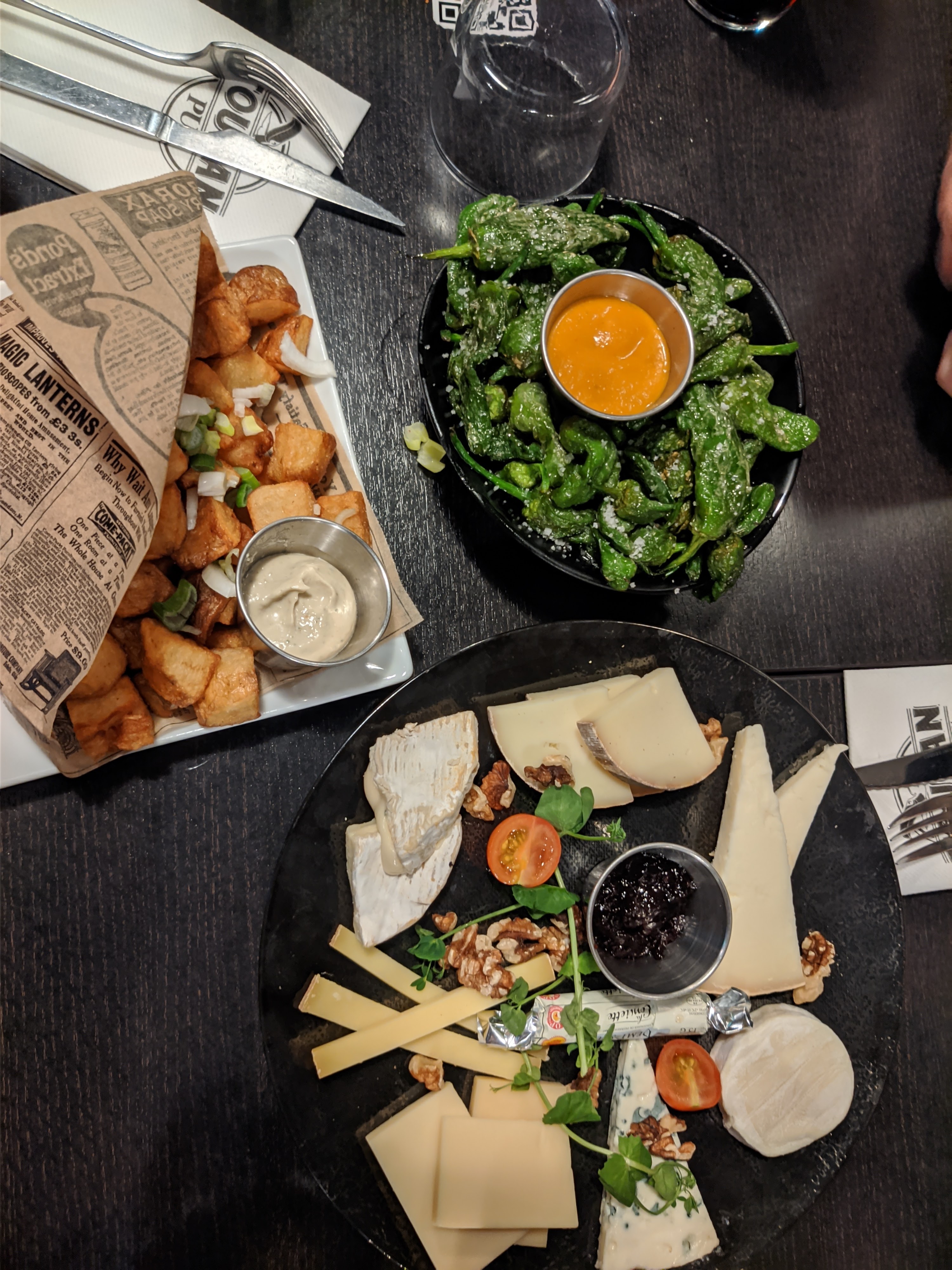 On y est allé pour boire un verre et grignoter, il y’a des cocktails très bon, la planches de charcuterie est pas mal, dommage qu’il n’y est pas une planche charcuterie ET fromage melangé. Les patatas bravas étaient excellentes et les dips de poulet aussi mais assez cher pour 4 morceaux de poulets. Serveurs super sympa !
