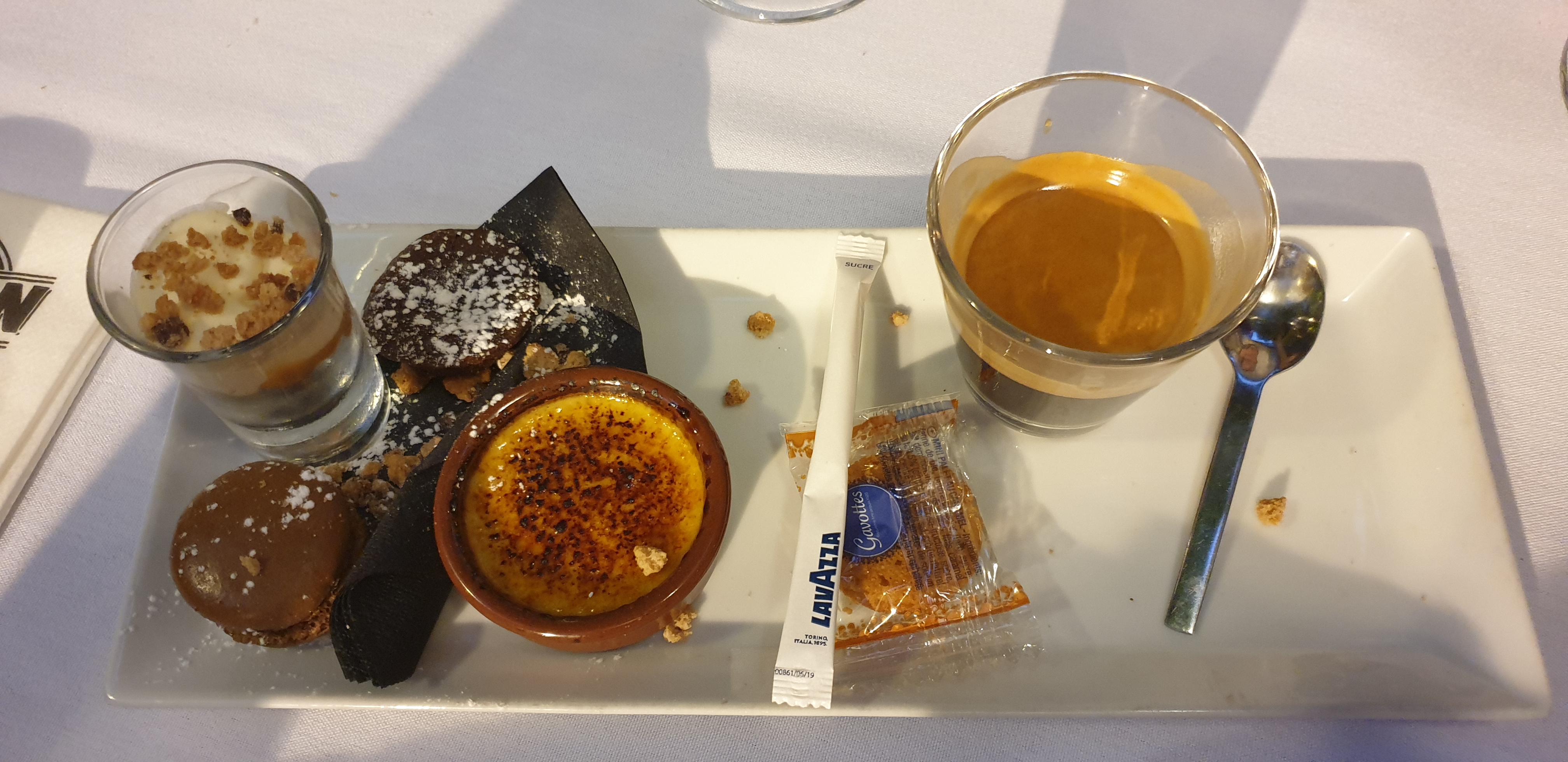 Nous étions 7 et nous avons tous bien mangé, la viande était visiblement bonne, pièce de bœuf et côtelette pour certains. Risotto et steak de thon pour d’autres. Le café gourmand bon mais un peu trop sucré et la mousse au chocolat excellente. Un midi en terrasse c’était assez agréable avec une équipe italienne qui à appréciée les plats. Je reviendrai