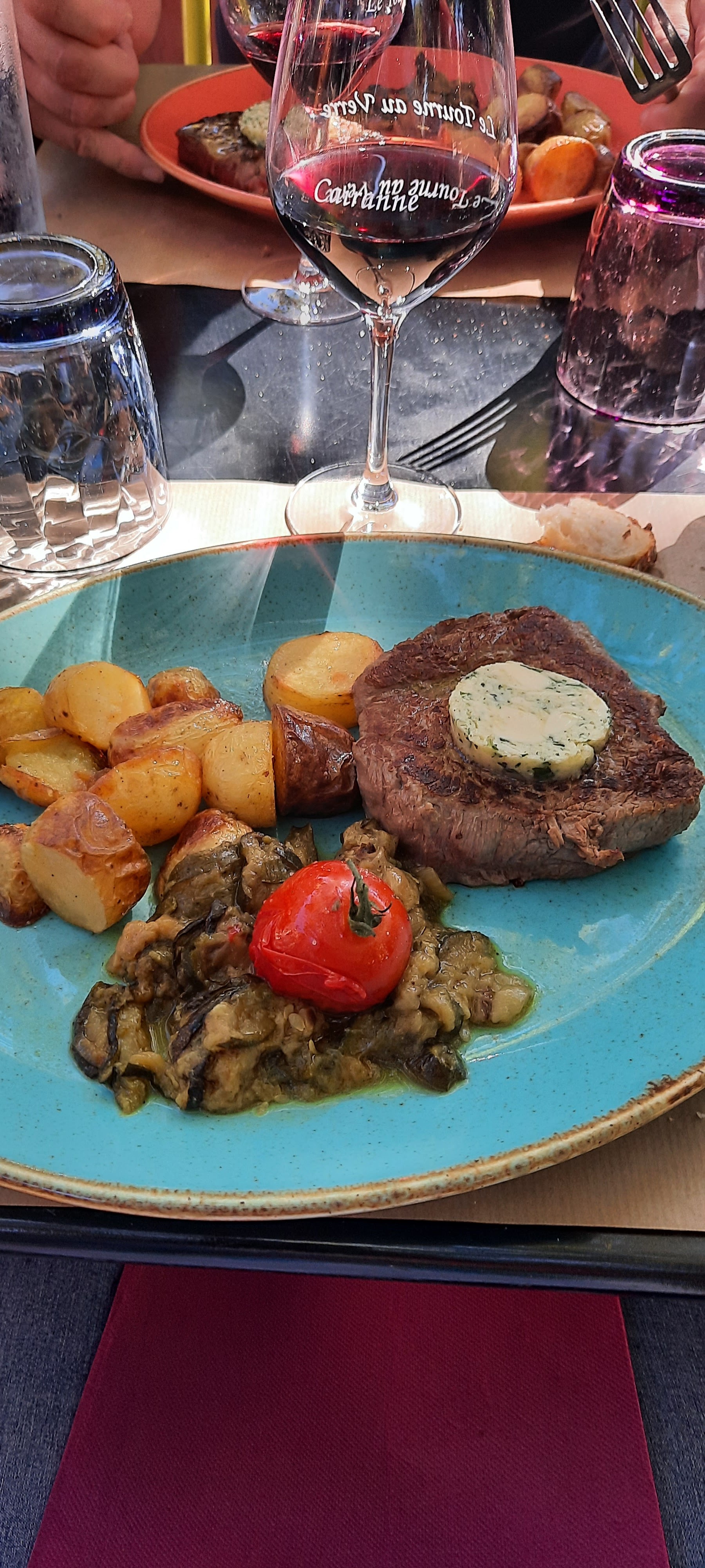 L'apéritif avec des aubergines et du fromage était une délicate attention, et le plat principal du ragoût de veau était parfait. Notre guide oenologique François (Avignon wine tour) nous a recommandé de venir ici pour le déjeuner... et c'était un excellent choix !