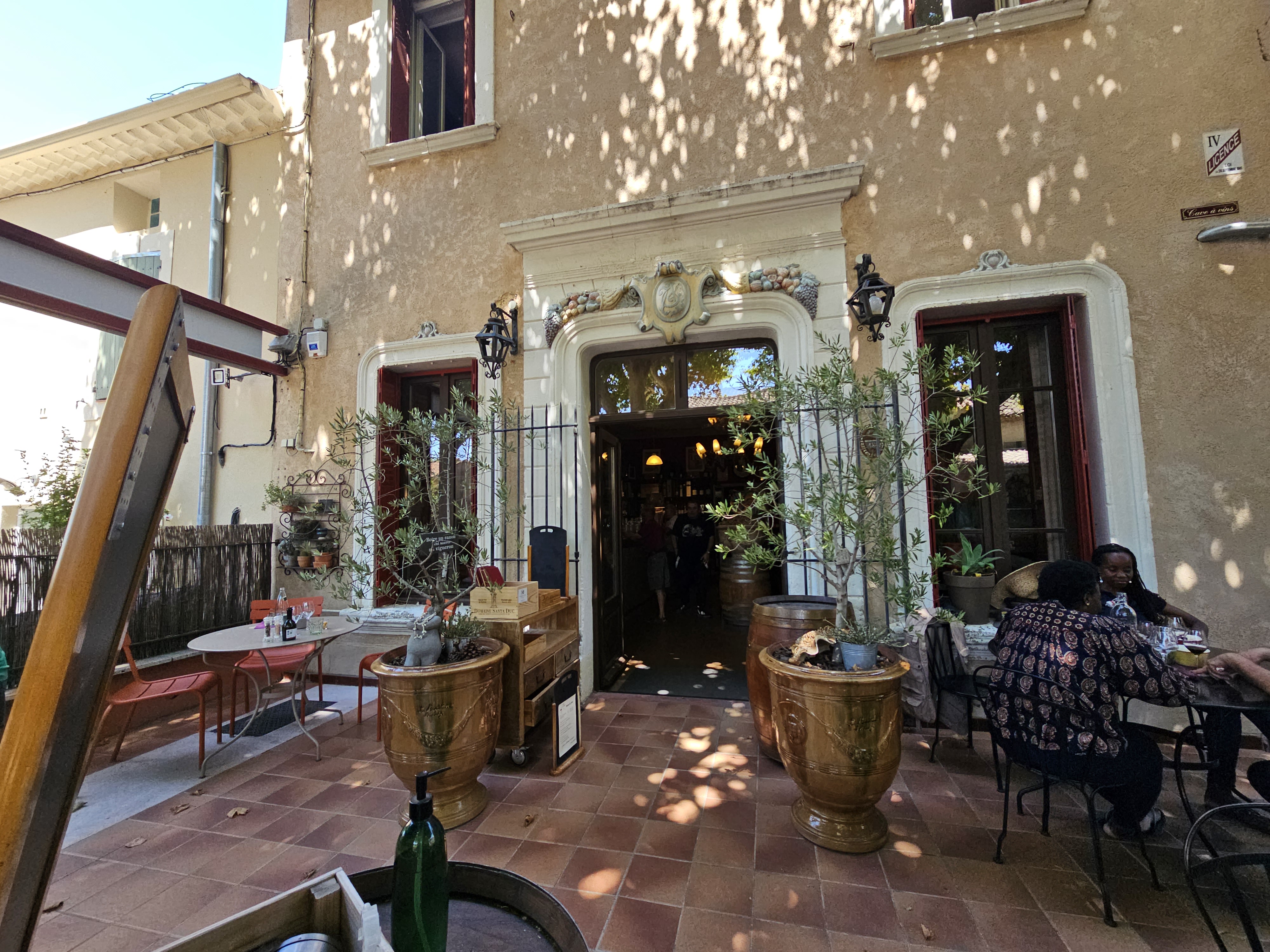 Excellent restaurant bar à vins et caviste. Plats provençaux simples et savoureux. Carte des vins extraordinaire, à prix raisonnables (majoration faible par rapport au prix à emporter), avec une superbe sélection de domaines de très bon niveau, dont certains vins en plusieurs millésimes. Terrasse ombragée très agréable, sous les platanes, avec le chant des cigales pour accompagnement. Seul bémol : un trafic important de poids lourds sur la route...