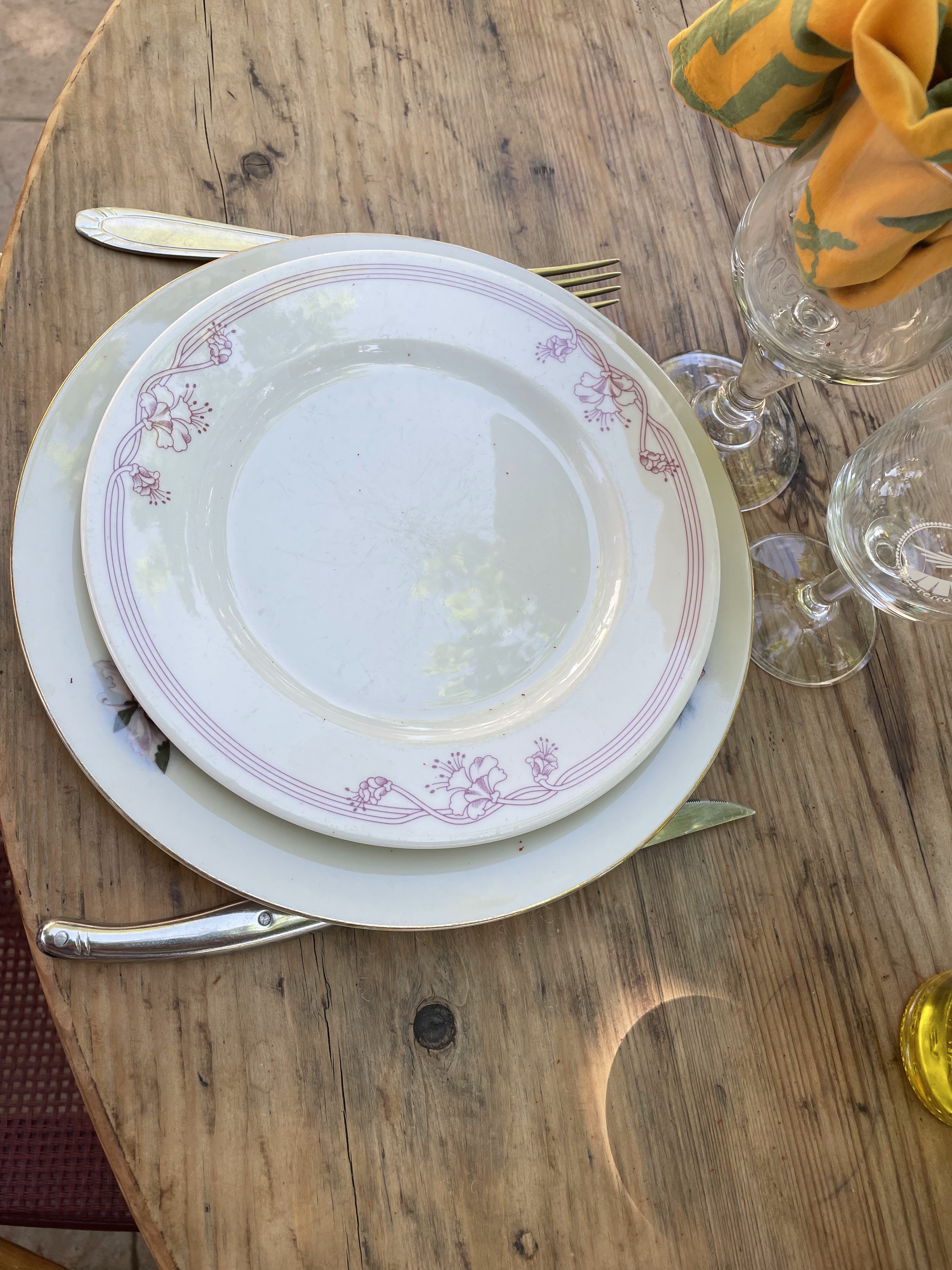 Un cadre magnifique. Vaisselle charmante de grand mère .on choisi l agneau pour 4..quel bonheur en bouche.bemol entrée imposée Soupe de favouilles..(avec 3 petits croûtons par personne)!j'ai refusé,étant allergique aux produits de la mer. J'ai eu une entrée de substitution (bonne au demeurant) Mais imposée aussi !..pour le vin on nous a demandé rouge ou rosé sans nous montrer de carte.....mystère sur le prix ! !! Je demande une boisson qui normalement est servi à la bouteille...là un verre C'est peut-être chipoter,mais je ne sais pas réellement si c'est ce que j'ai commandé. Une personne d un certain âge est venue nous servir...quel froideur!! L autre serveuse etait sympathique.. Desserts variés mais un peu chiche... Le plus: Les cigales qui ont fait un joli concert pour notre plus grand plaisir. Et une cuisine goûteuse