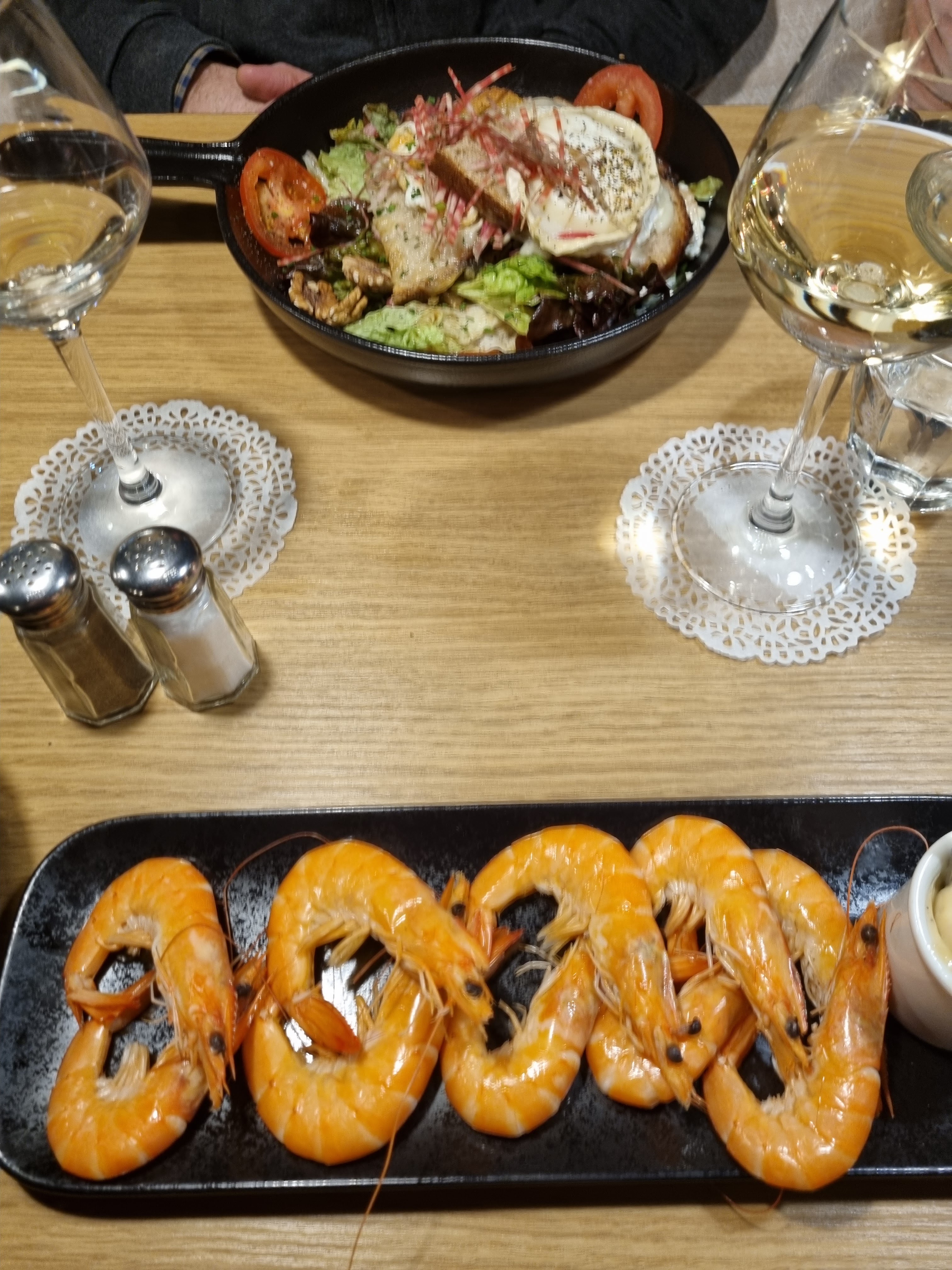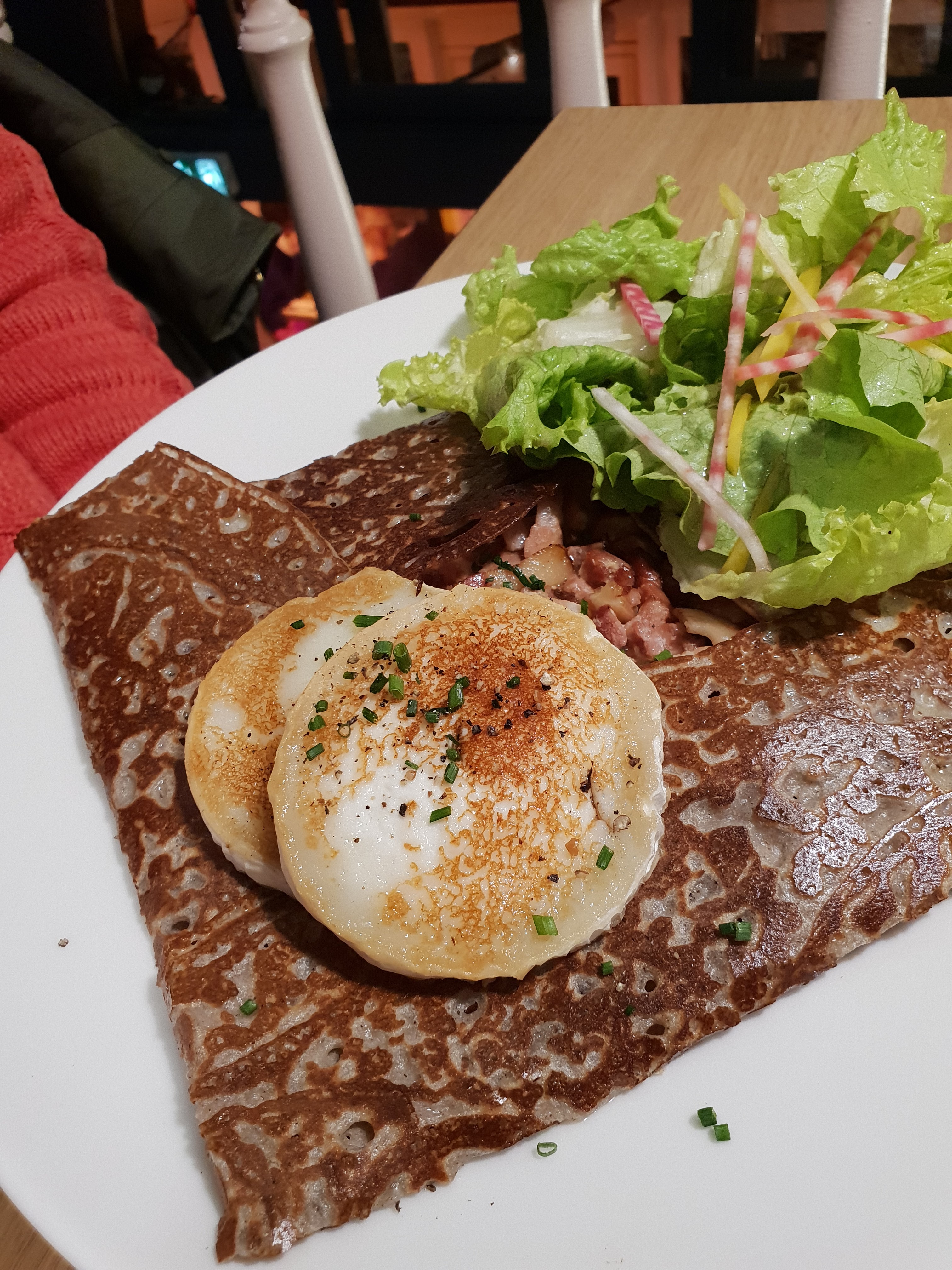 J’ai mangé avec ma famille et je n’ai pas été déçu : 10 crevettes qui était très bonnes ensuite pour le plat j’ai eu droit à une magnifique crêpe façon savoyarde seul bémol : elle était très lourde mais excellente ☺️ Les serveurs très sympathiques et accueillants Pour une découverte nous n’avons pas été déçus !