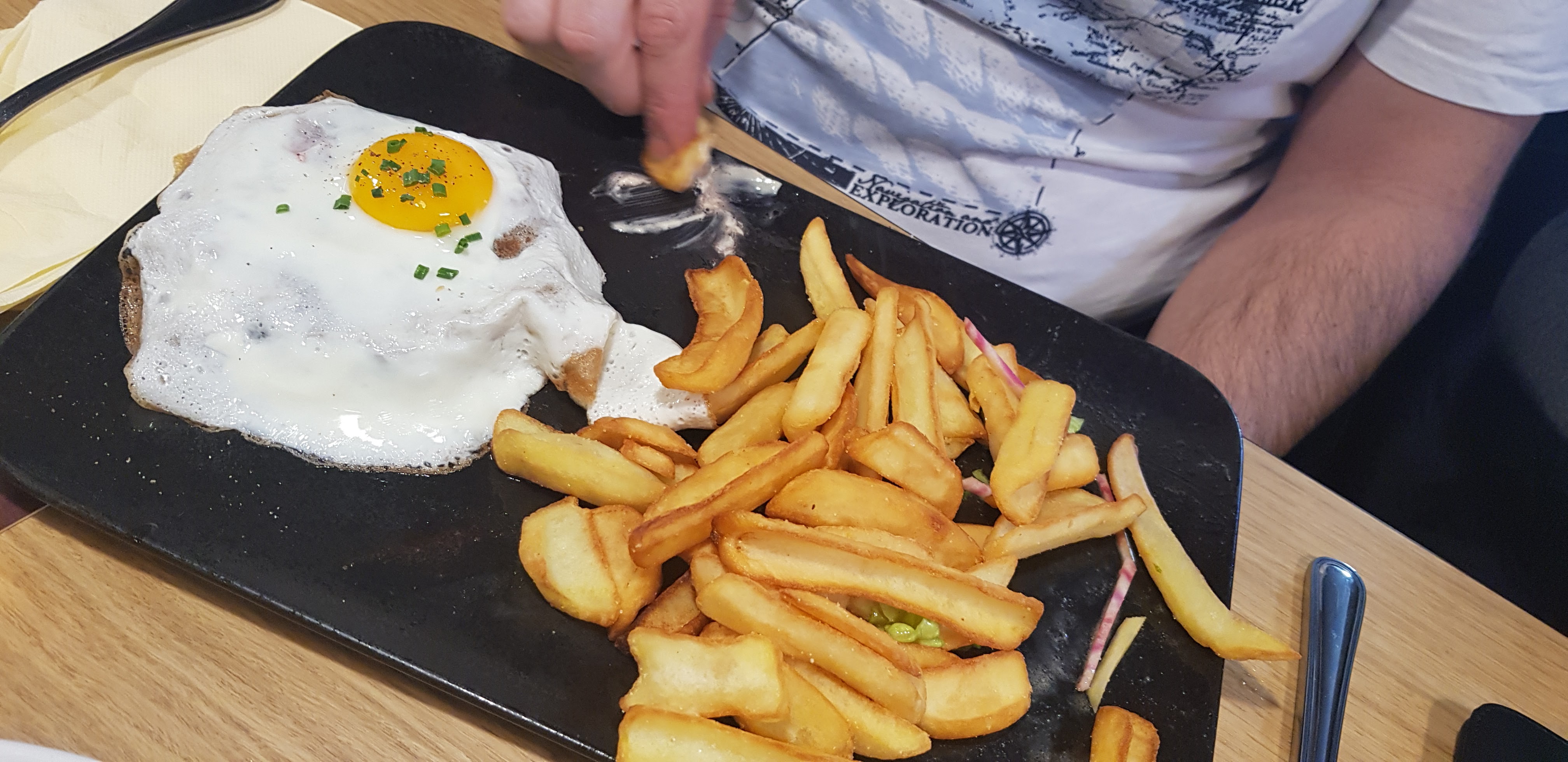 Nous avons étés dans ce restaurant samedi 23/03, super accueil, nous avons attendu 1h entre le moment où on est arrivé et le repas. Des personnes arrivées largement après nous, on été servis avant nous (pourquoi ?) Mon ami avait commandé un steak à a cheval saignant, le serveur le ramène bien cuit, on le renvoie en cuisine, et il revient un peu plus rosé mais toujours cuit. Nous n'avons pas osés le renvoyer, beaucoup trop de gâchis. La photo montre le deuxième steak. Si vous voulez manger de la viande, je déconseille. En ce qui concerne les crêpes je n'ai pas eu de problème particulier.