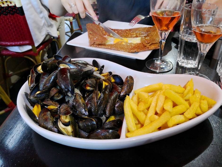 Petite crêperie sympa avec personnel joyeux. A 5, nous avons pris 4 moules frites et 1 galettes complètes avec 5 crêpes sucrées. Rien a dire , c'était bon mais petit bémol une assiette de frites était remplie du jus des moules.... J'ai demandé une nouvelle assiette de frites, pas de soucis pour l'avoir. Ce n'est pas un resto gastronomique mais une bonne petite crêperie de la rue de la soif.