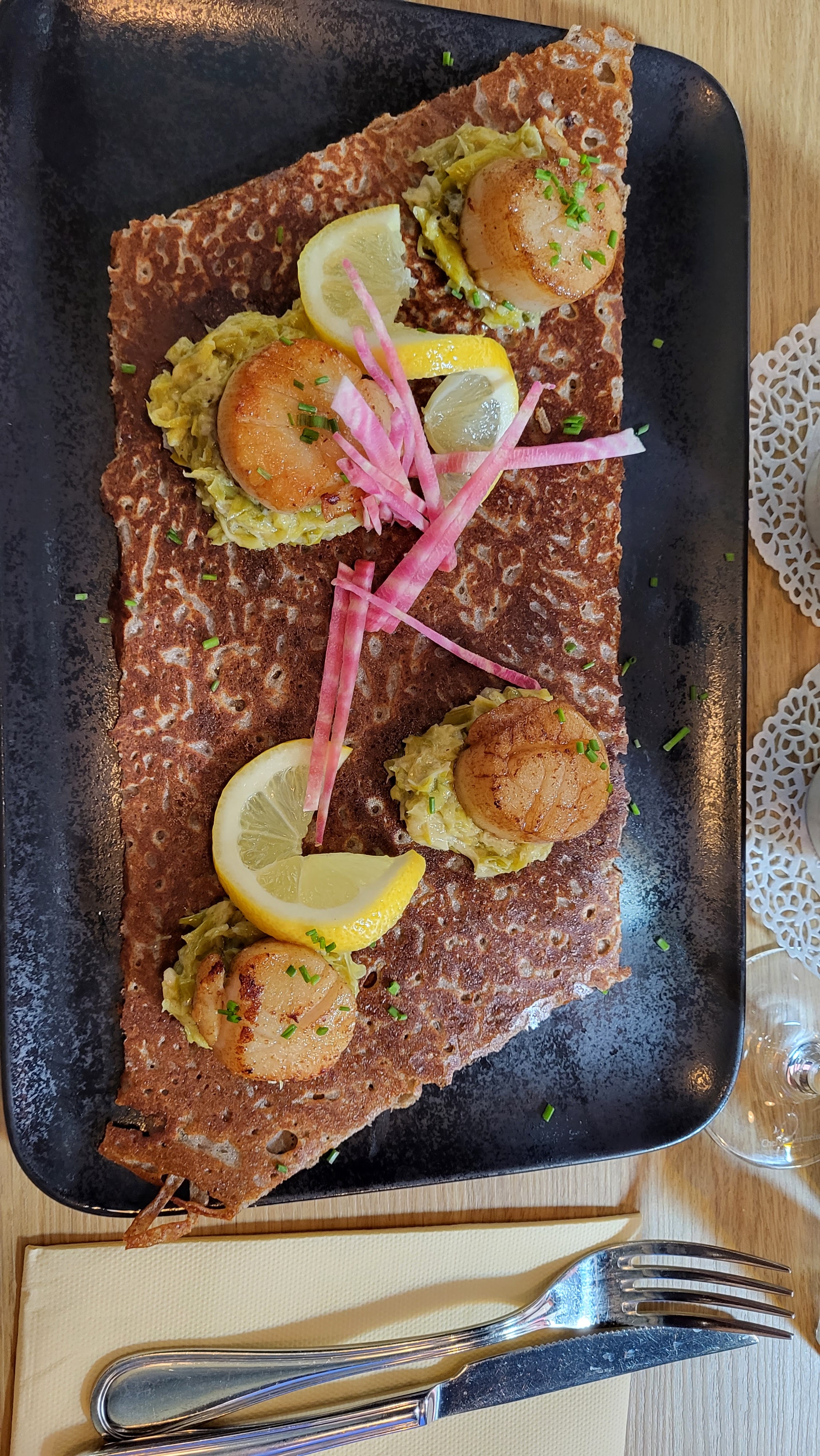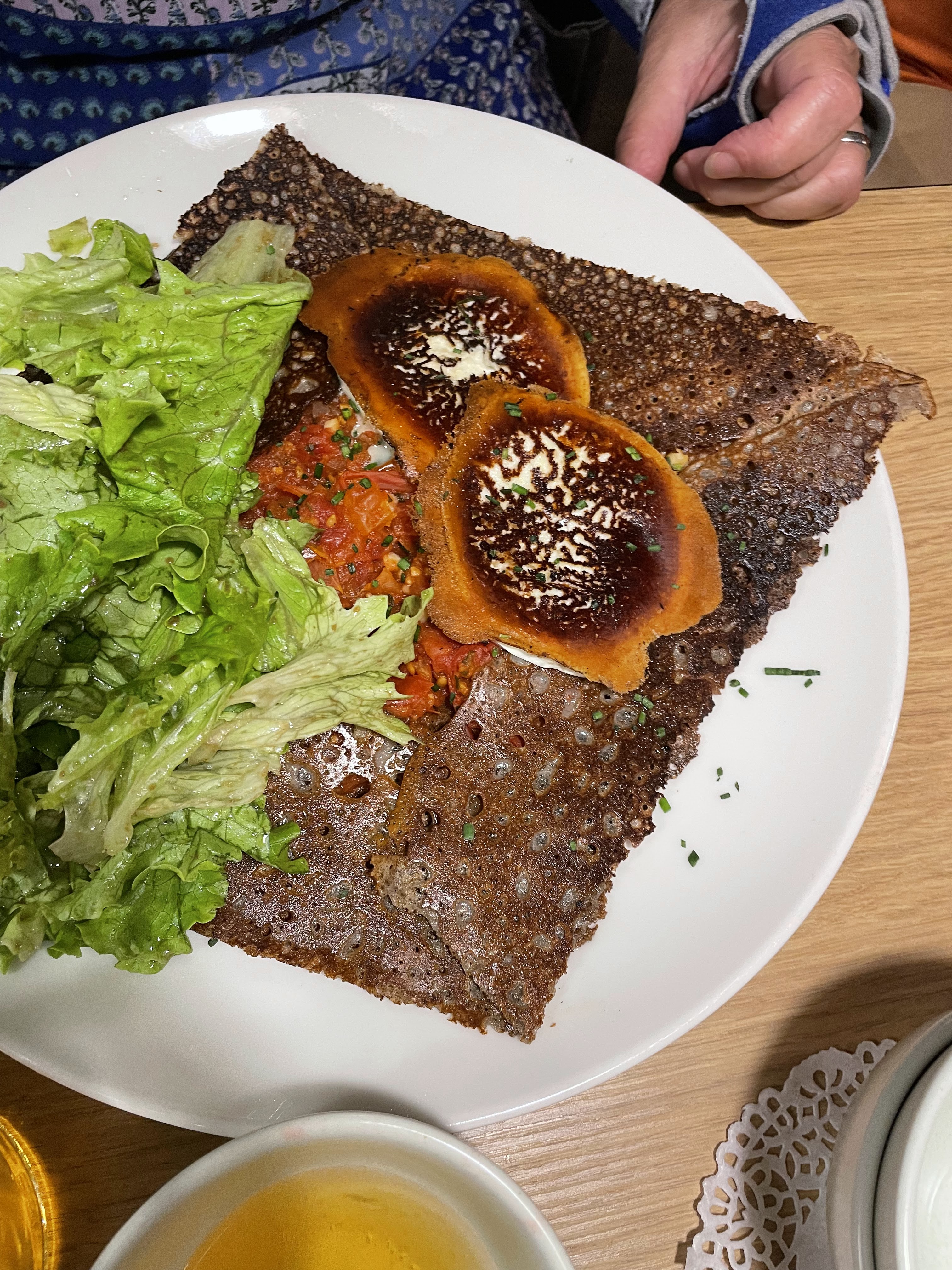 Je recommande. Nous étions 4 dont une personne qui ne pouvait manger des féculents. La cuisine a fait un accompagnement exprès. Les galettes un délice. MERCI