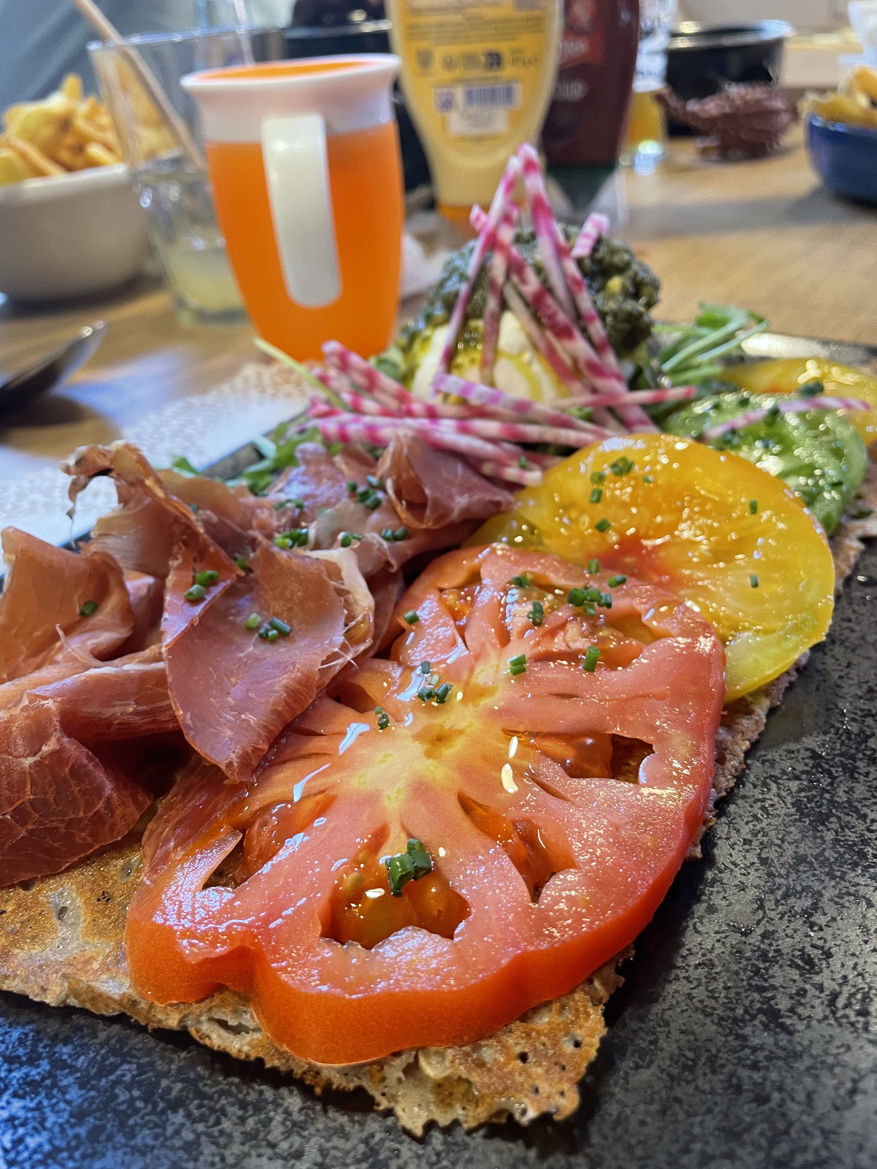 Alors que dire galette plutôt bonne par contre burger bao très petit et très très chère 25euros ….. garniture bonne mais pains sec on nous rapporte mayo ketchup comme à la cantine..