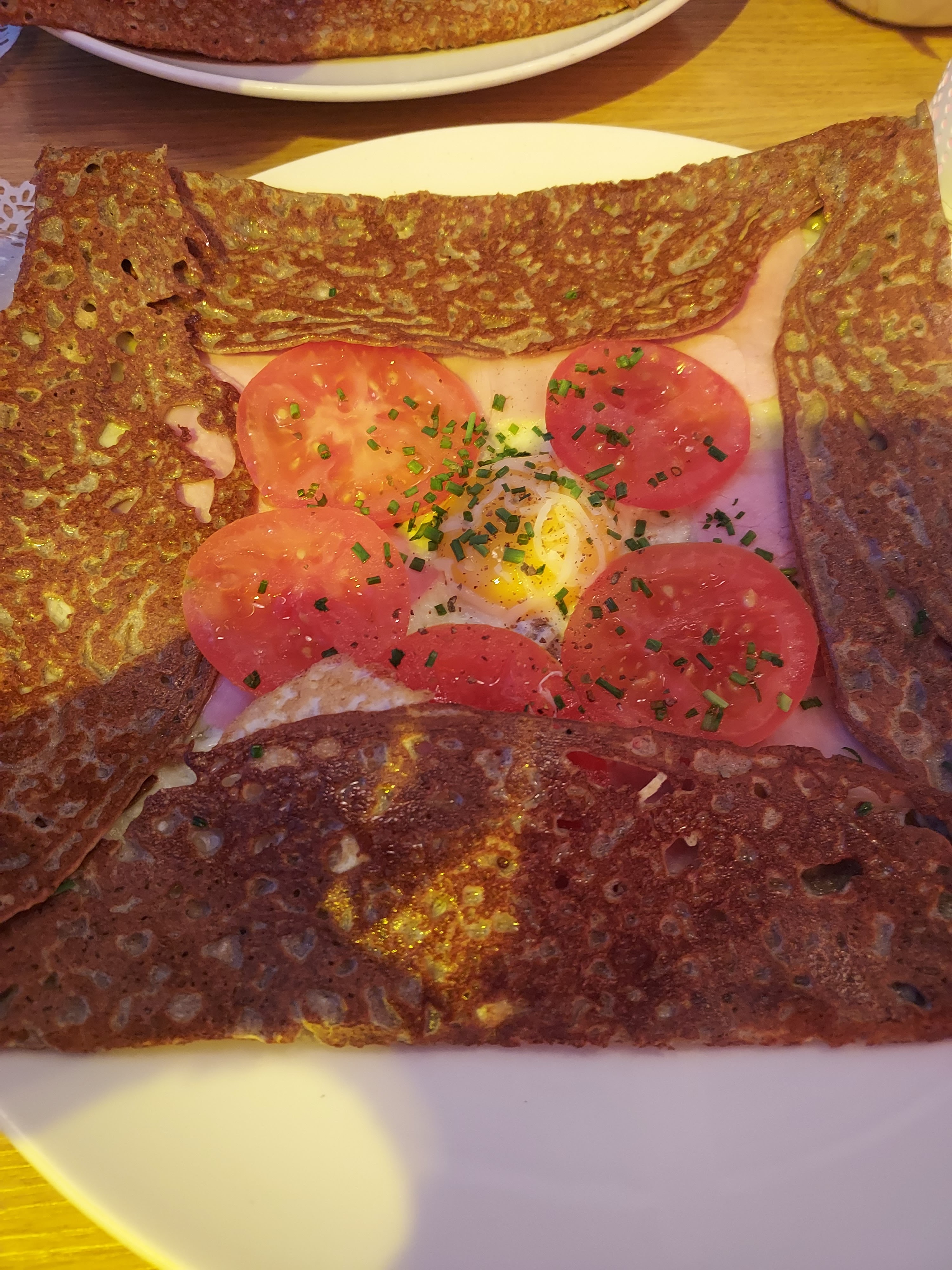 Galette peu fournie malgré le prix On reste sur sa faim Commandé une glace blé noir, euh...... où est le goût blé noir ? Plutôt vanille très sucré Restaurant sympa mais pas justifié