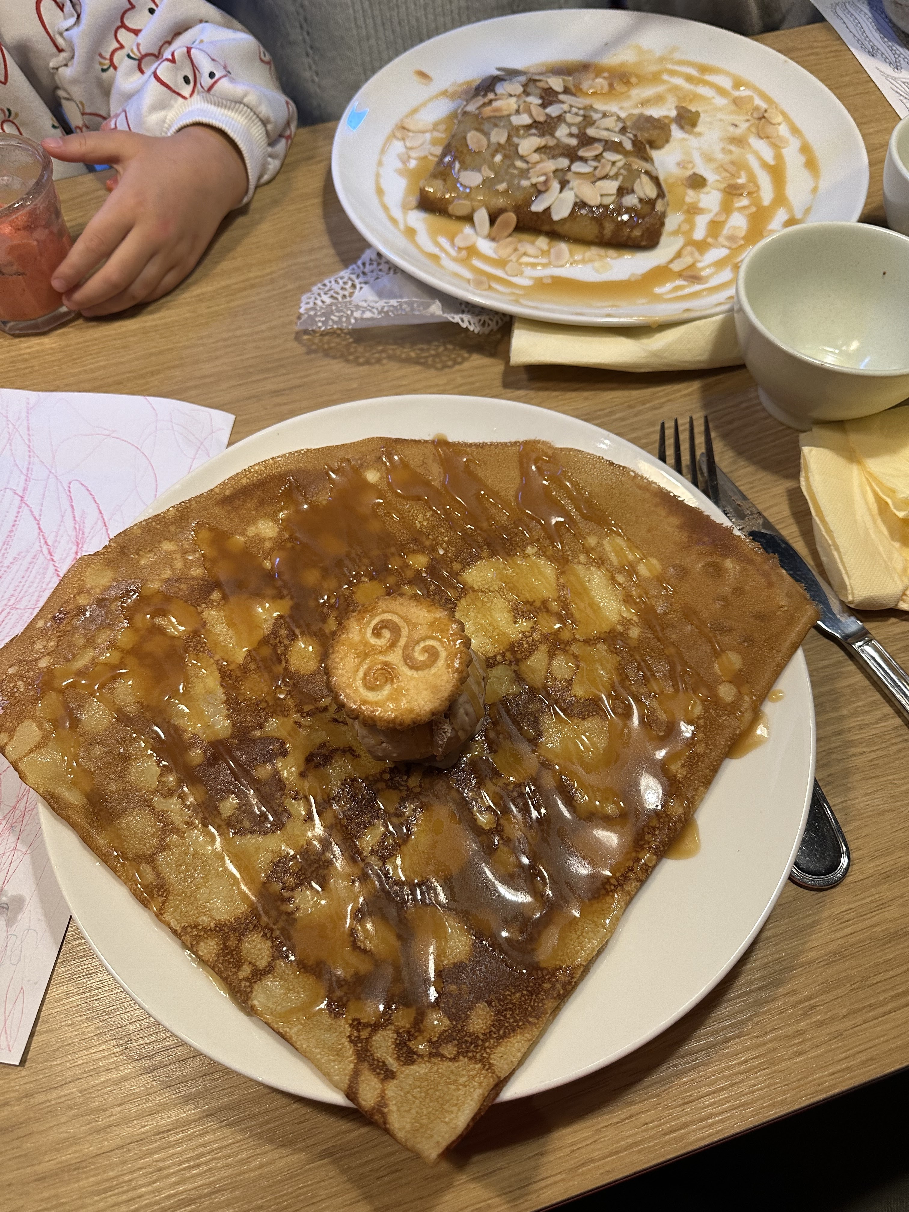 Pause goûter, je recommande la crêpe au beurre et au sucre ou encore celle au caramel beurre salé, les commerçants savent recevoir avec humour !