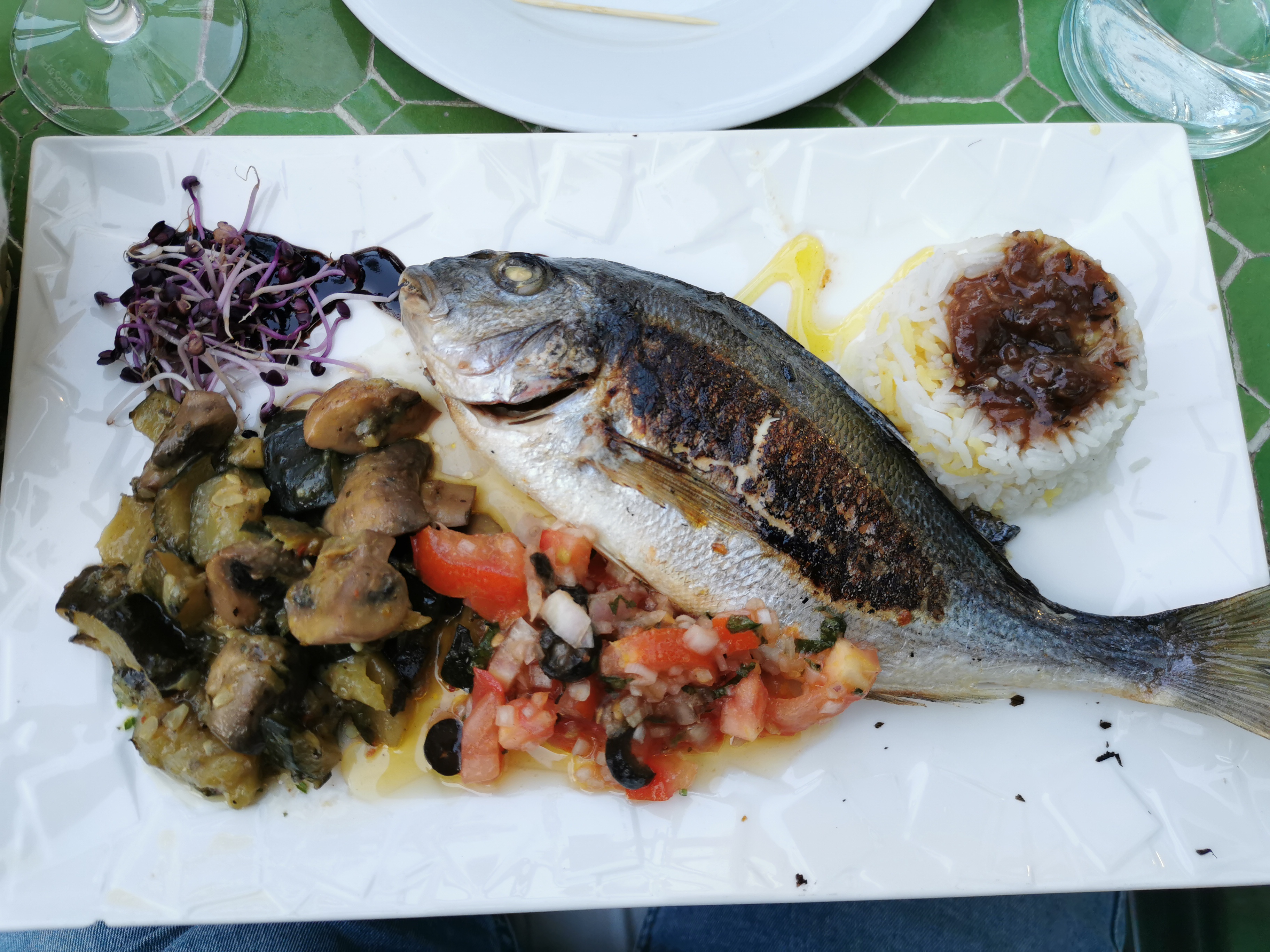 Acceuil parfait et terrasse en hauteur très calme Entrée soupe de poissons et sardines marinées Rien à dire si ces n'est excellent Dorade grillée en plat principal très bon également En dessert tarte Tatin avec boule de glace très bien réussie Restaurant à tester absolument