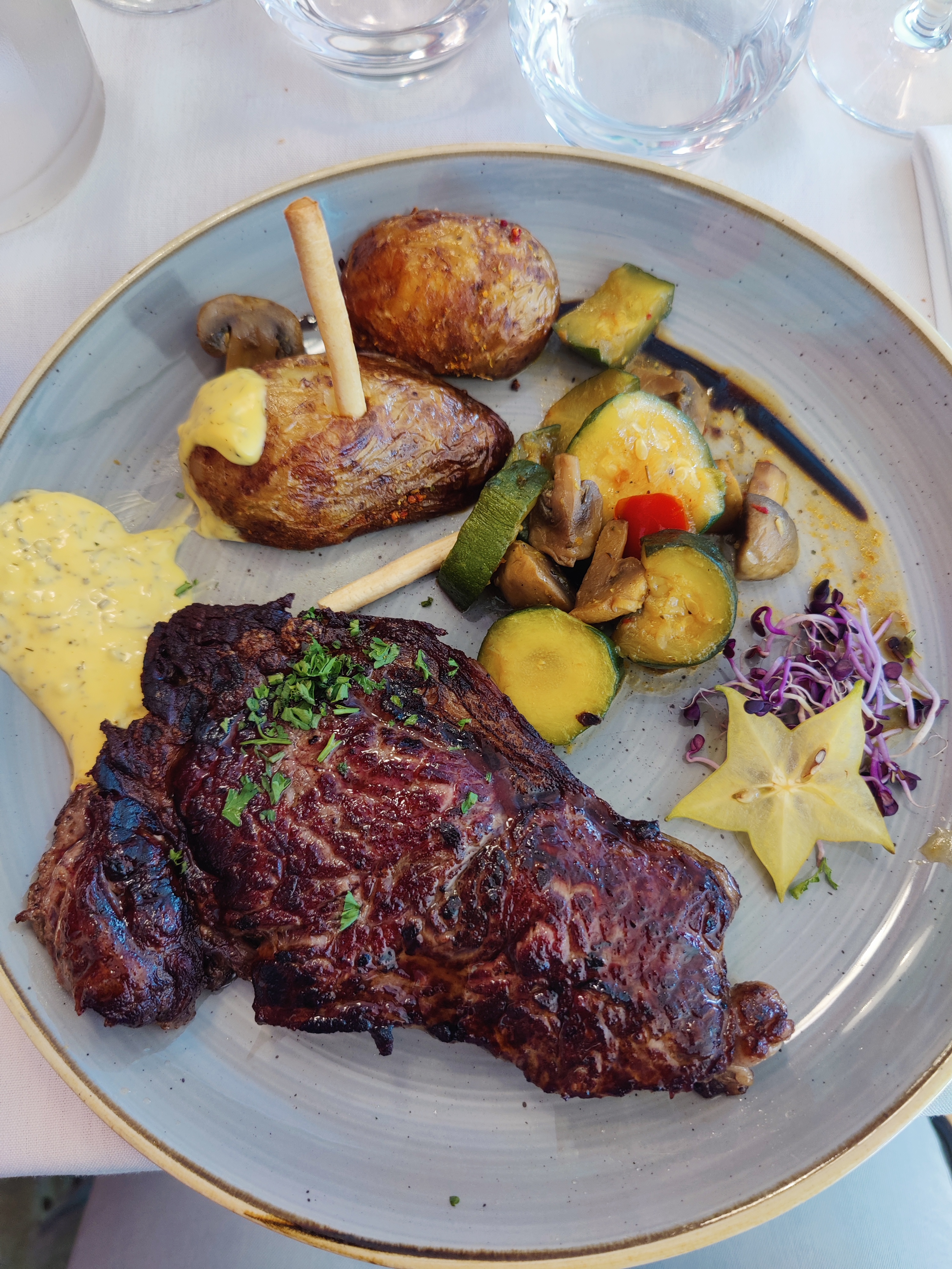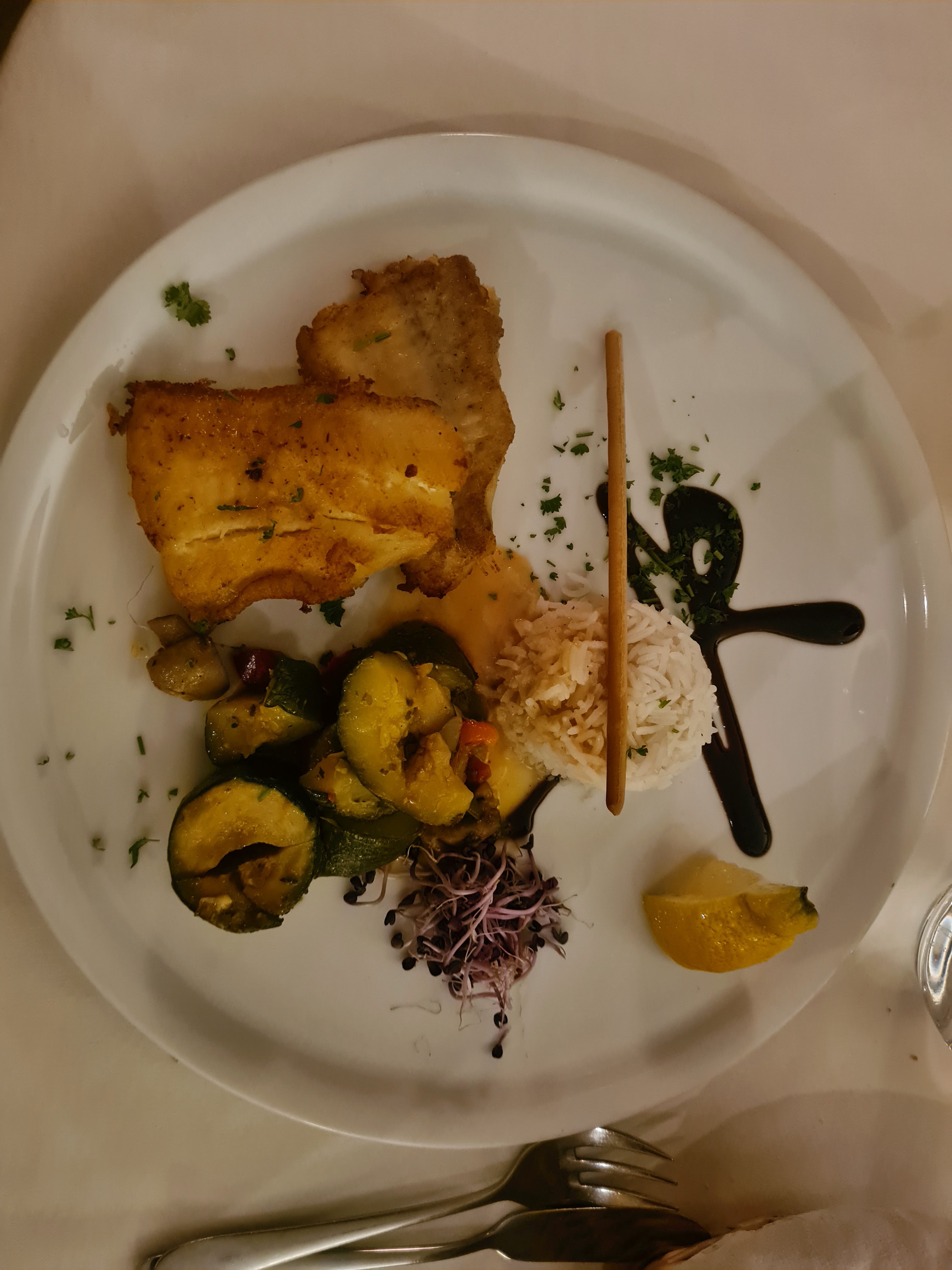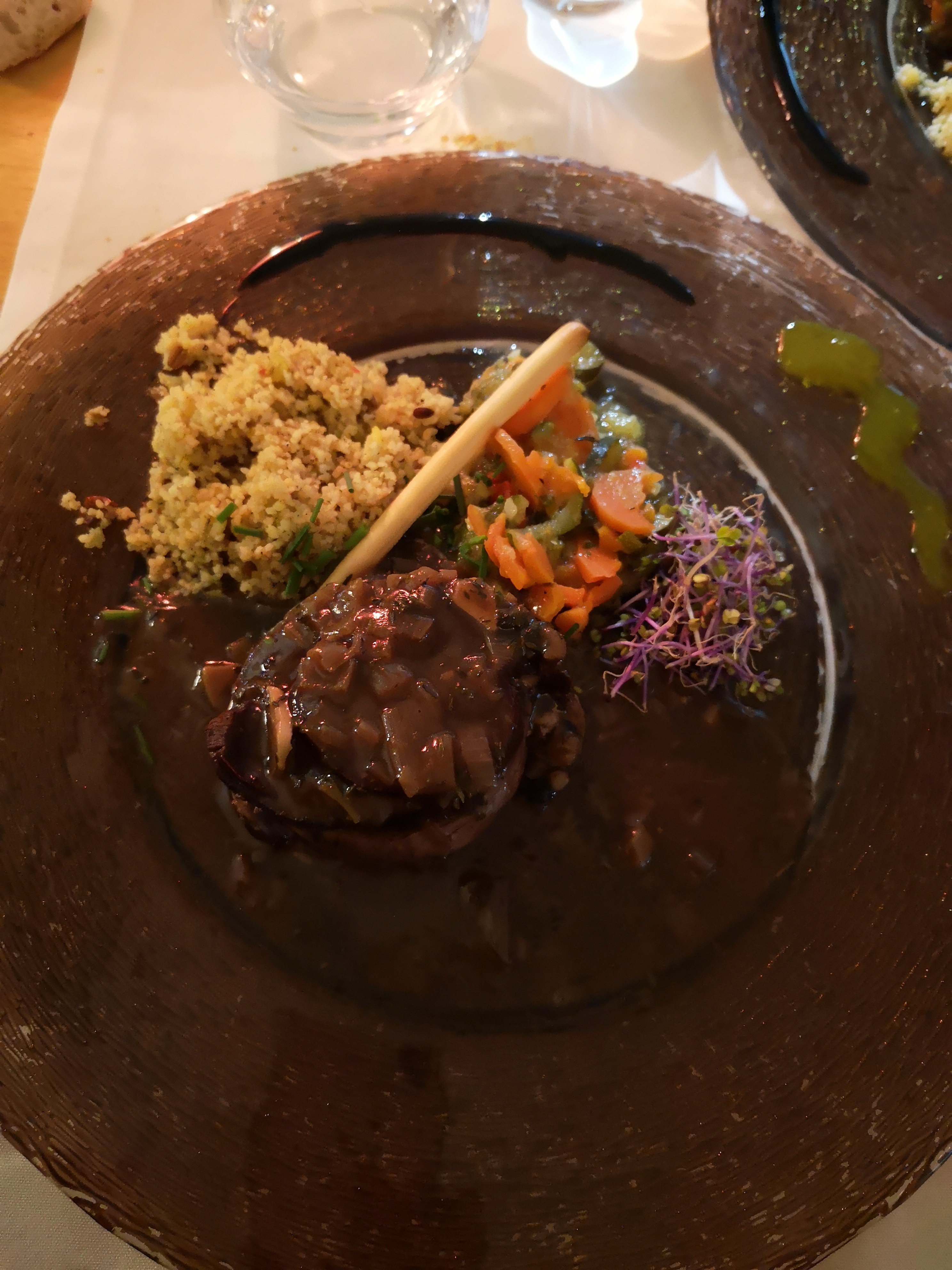 Excellent ! produits de qualité, cuisson de la viande à la perfection, les légumes aussi. + jolie décoration des assiettes. Une saveur qu'on ne trouve pas à la maison et qui surprend agréablement nos papilles.