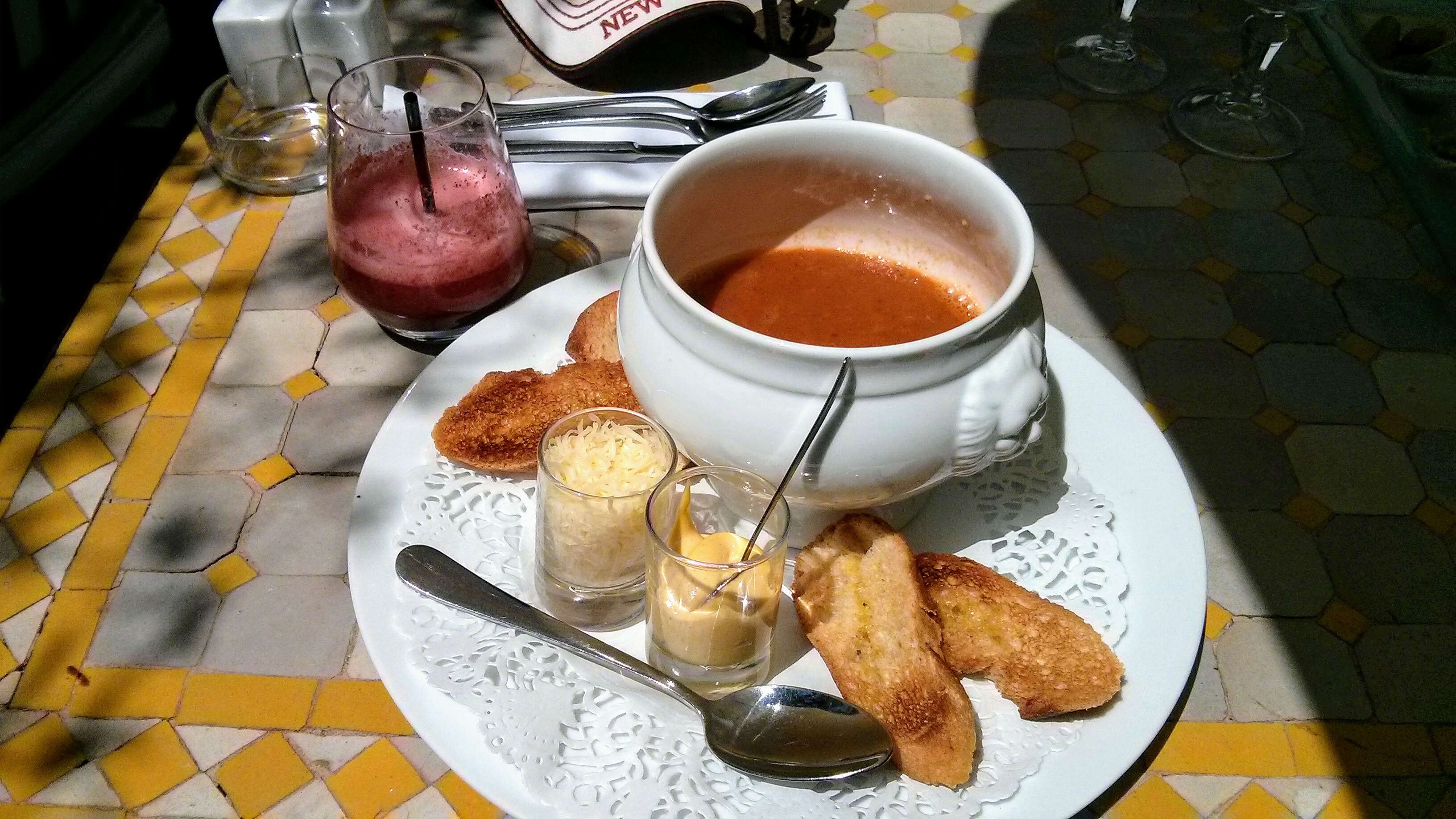 Terrasse ombragée, sur la rue pietonne, prix raisonnable, assiette bien garnie, service rapide, je reviendrais avec plaisir
