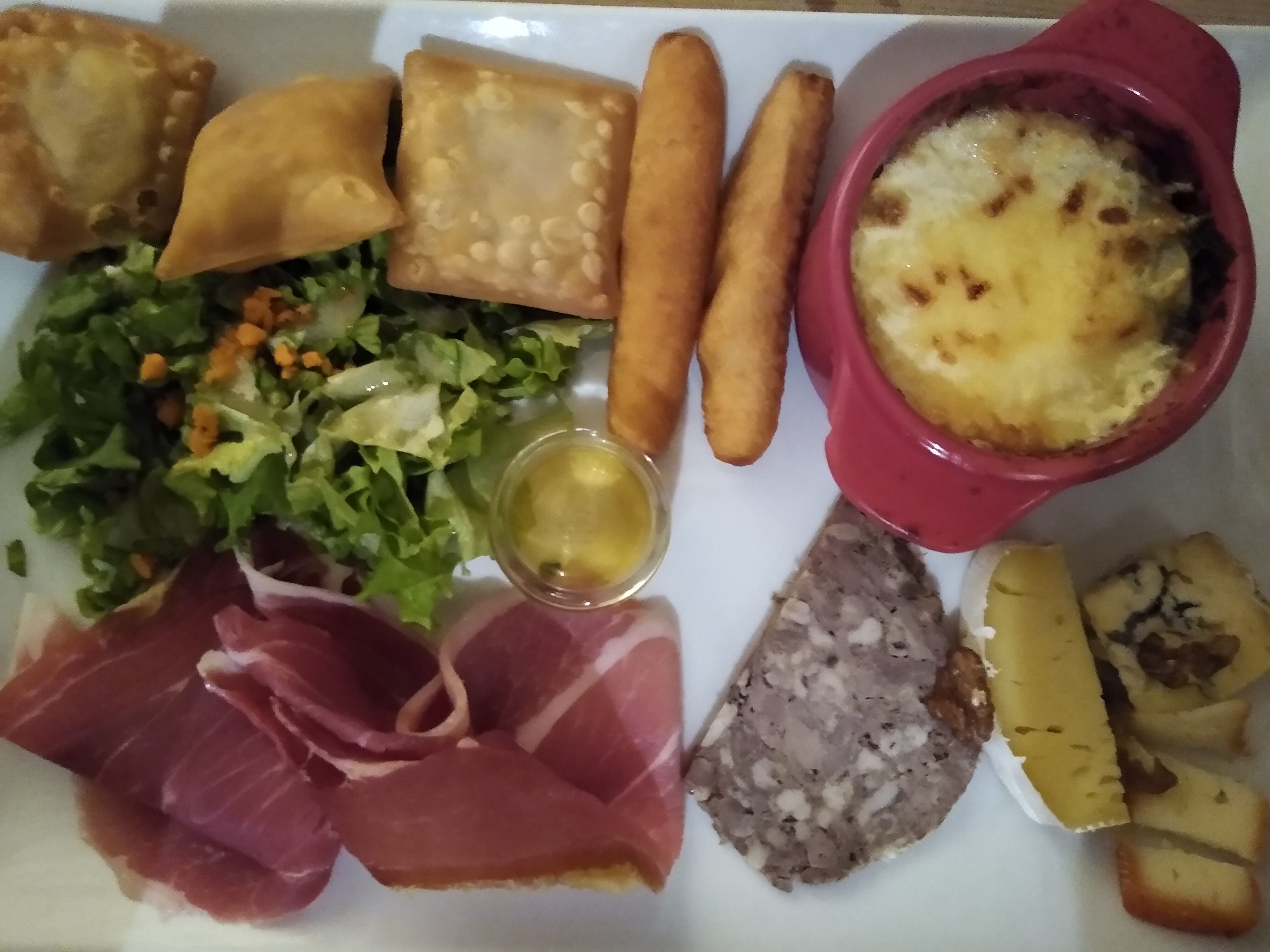 Excessif les tourtons à la viandes sont mauvais le jambon moyen 1h30 pour être servi pas de vinaigrette dans la salade à peine lavée un service déplorable le lieu à bien changé à éviter