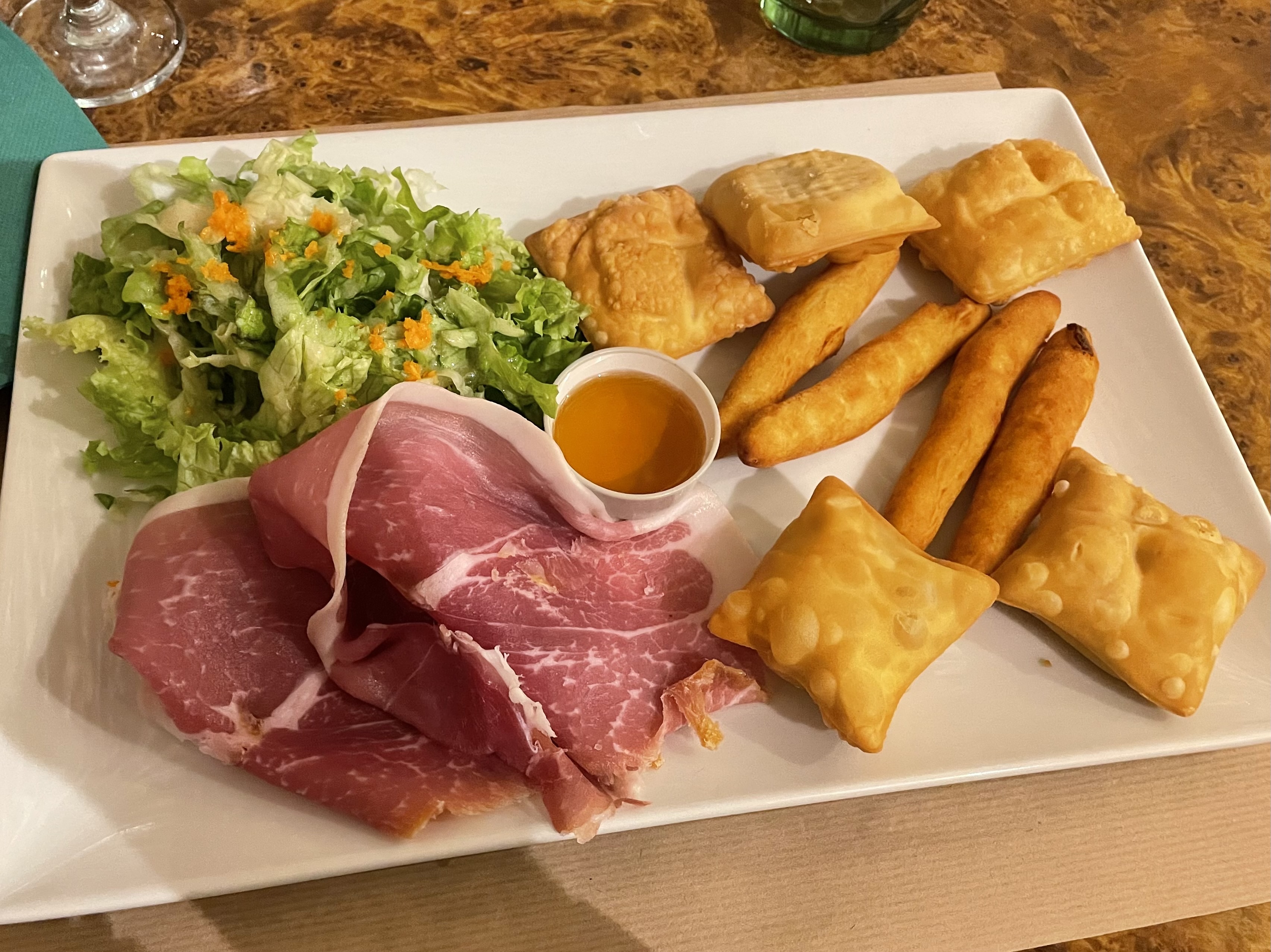 Nous avons mangé une assiette de dégustation avec toutes les spécialités du coin : tourtons, oreille d'ane, raviolis, fromages. Tout est exquis. Et le serveur nous a expliqué en détail ce qu'était chaque article. Excellent service et excellente cuisine.