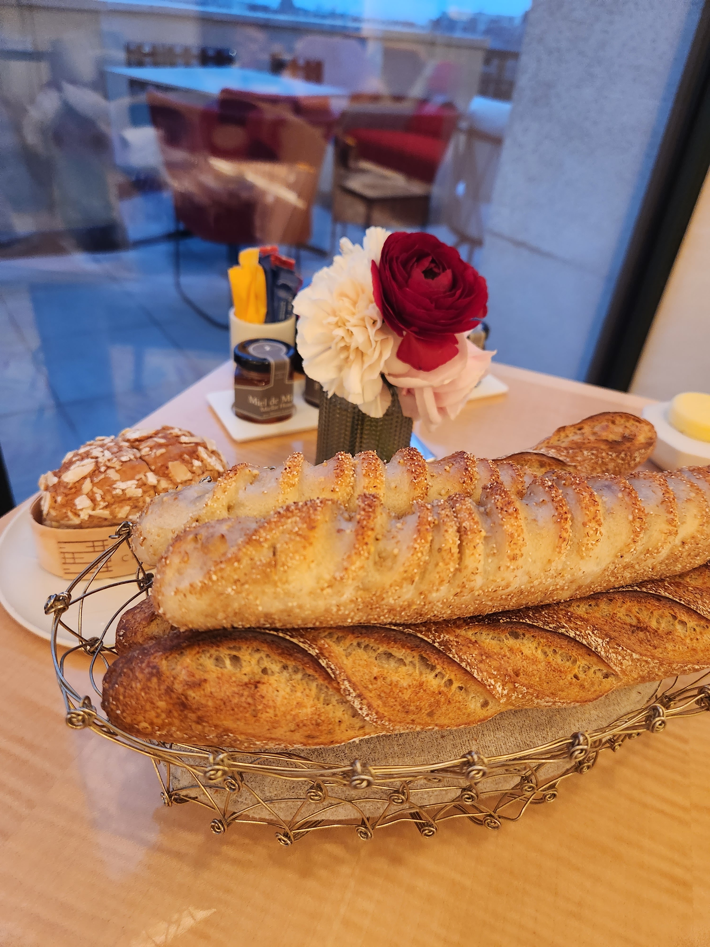 Petit déjeuner luxueux et calme sureq toits de Paris. C'est un calme à prendre.