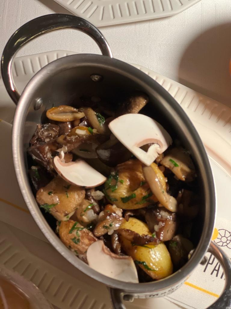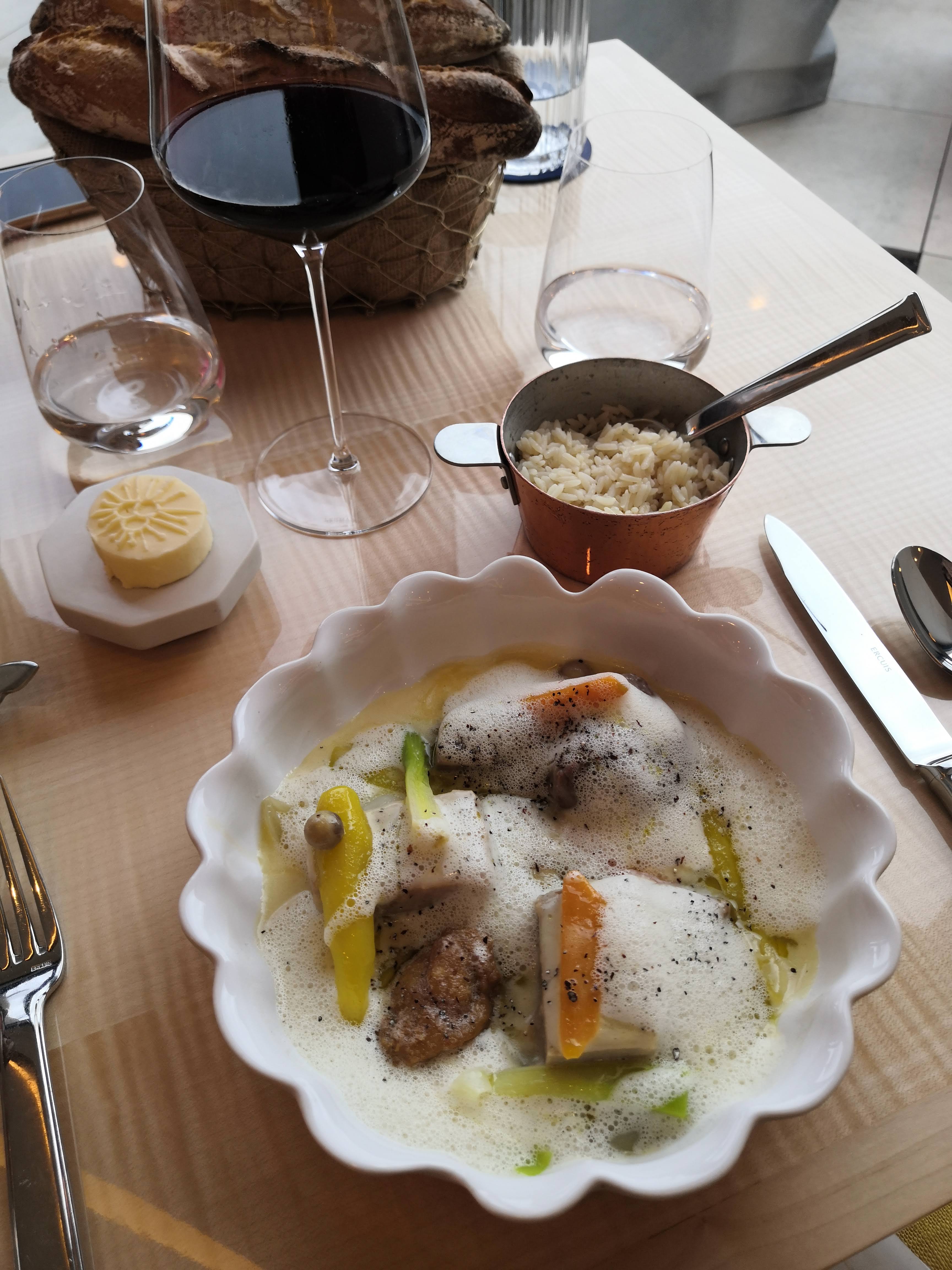 Peu de viande dans la blanquette de veau, surtout de la graisse. Sauce avec beaucoup trop d'oignons, très peu de champignons et un morceau de carotte. Riz cuisson pilaf avec goût du fenugrec trop prononcé. Île flottante très perfectible. Crème beaucoup trop liquide. Globalement déçu par le plat et le dessert. Service en revanche excellent et très belle vue.