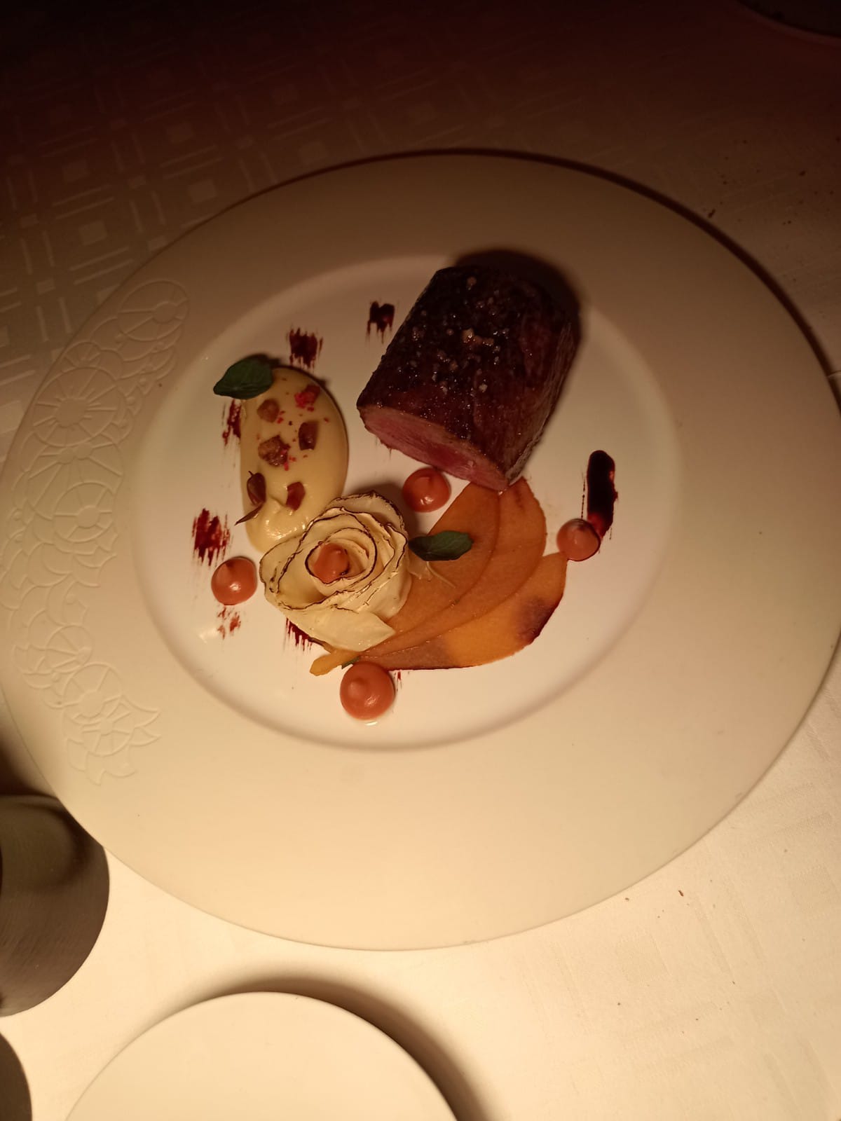 Une vue magique un service impeccable des plats très fins. Très bonnes explications et conseils notre homard non grillé était fondant et gouteux . Pain maison beurre demi sel excellent champagne rosé délicieux et le feuilleté du mille feuilles était à tout point de vue craquant. Quant au café accompagné d'un gâteau tranché et d'un chocolat à l'effigie du cheval cela change d'autres restaurants...