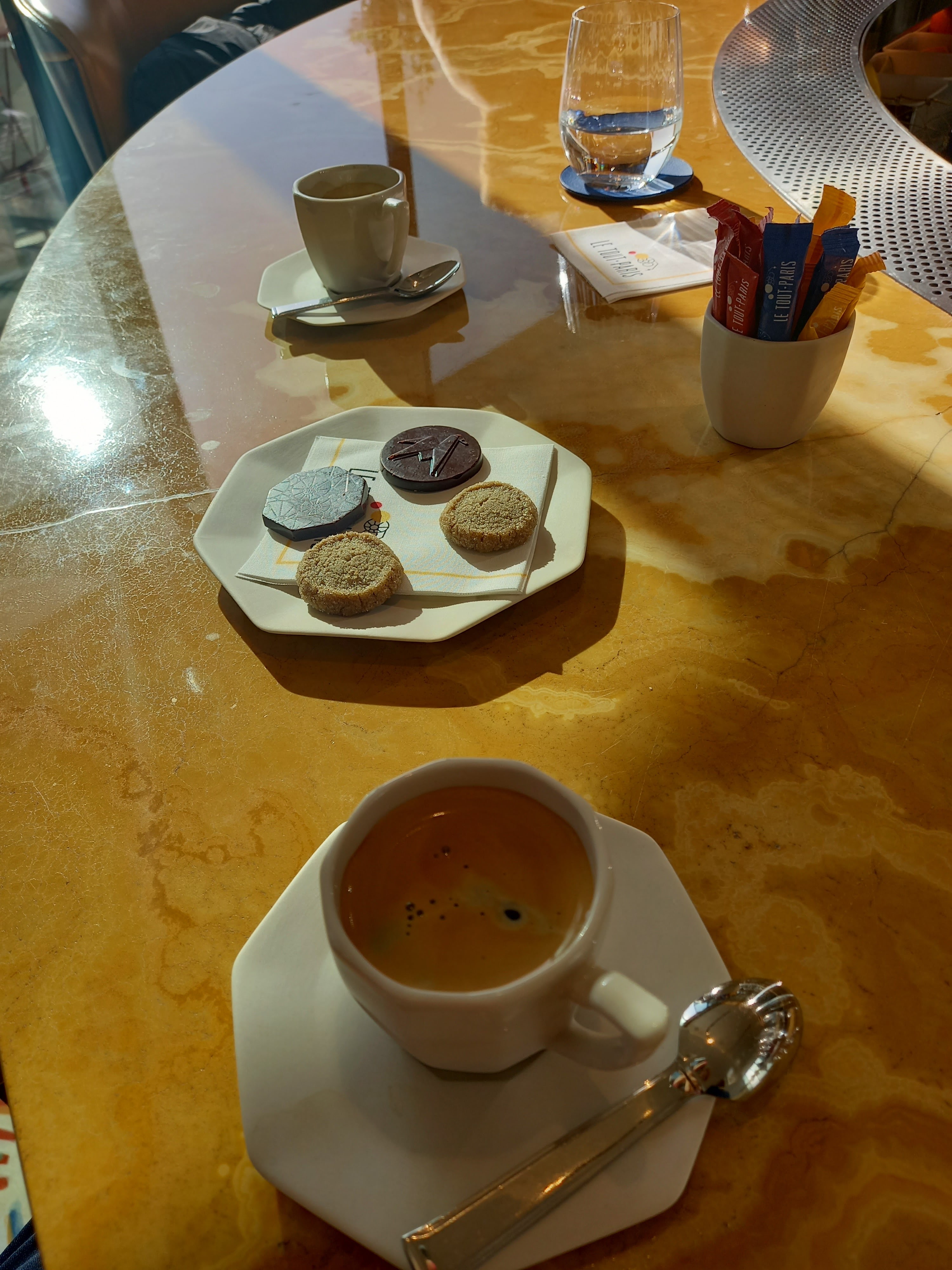 Une superbe adresse. La vue est magnifique et on y est très bien reçu. Mention spéciale à l'ascenseur pour y accéder qui fait re-découvrir le quartier historique autour de la Samaritaine. J'y ai pris le chocolat chaud, léger et très fort en cacao. À 16€, il valait presque son prix !