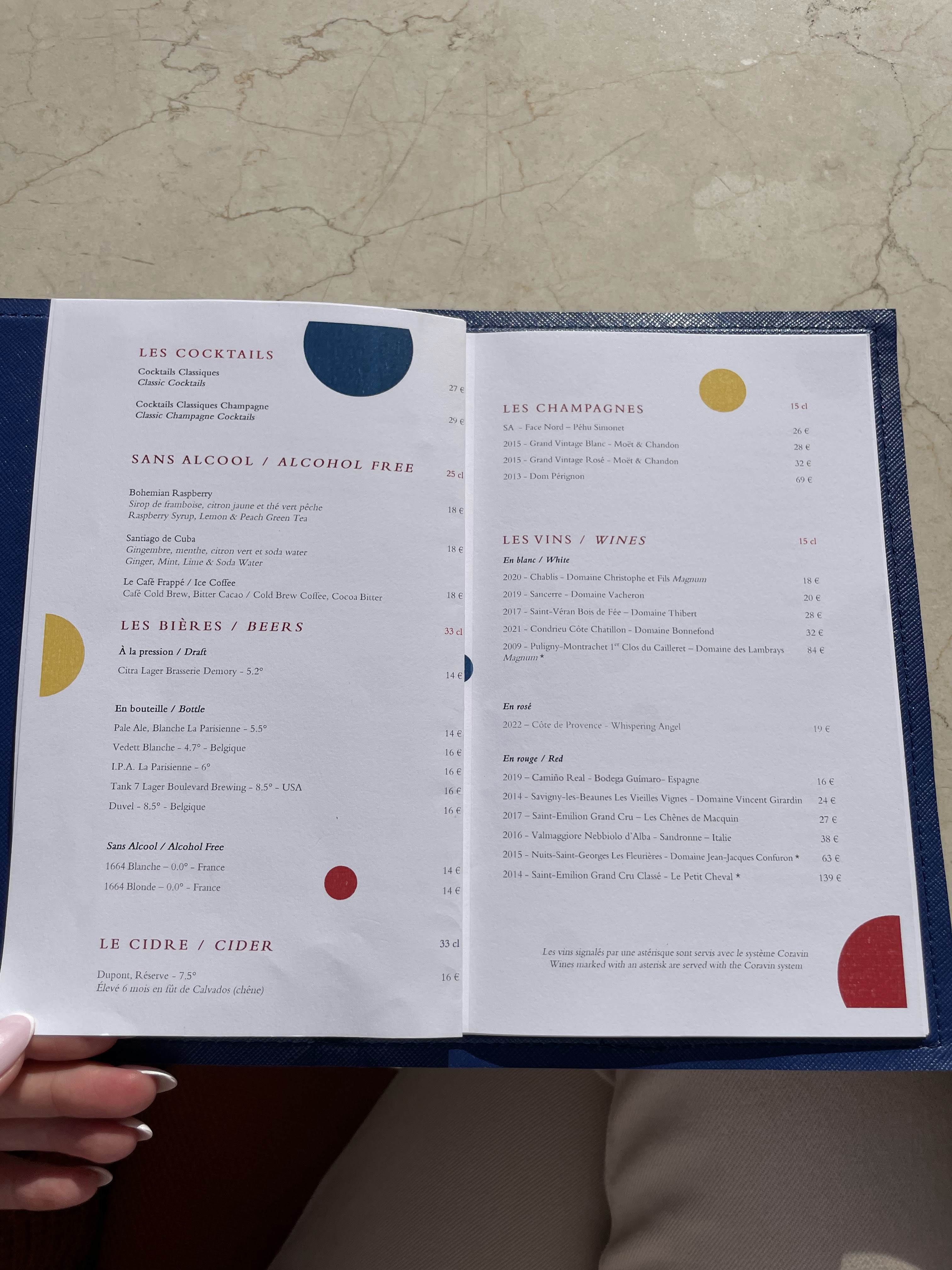 Une expérience gastronomique exceptionnelle au Cheval Blanc à Paris! Des saveurs exquises, une ambiance chaleureuse et une vue magnifique. Chaque plat était un délice, le service impeccable. Un lieu incontournable pour les amateurs de bonne cuisine et d'atmosphère enchanteresse. La créativité des plats et l'attention aux détails ont vraiment marqué notre soirée, faisant de cette expérience une véritable célébration culinaire.
