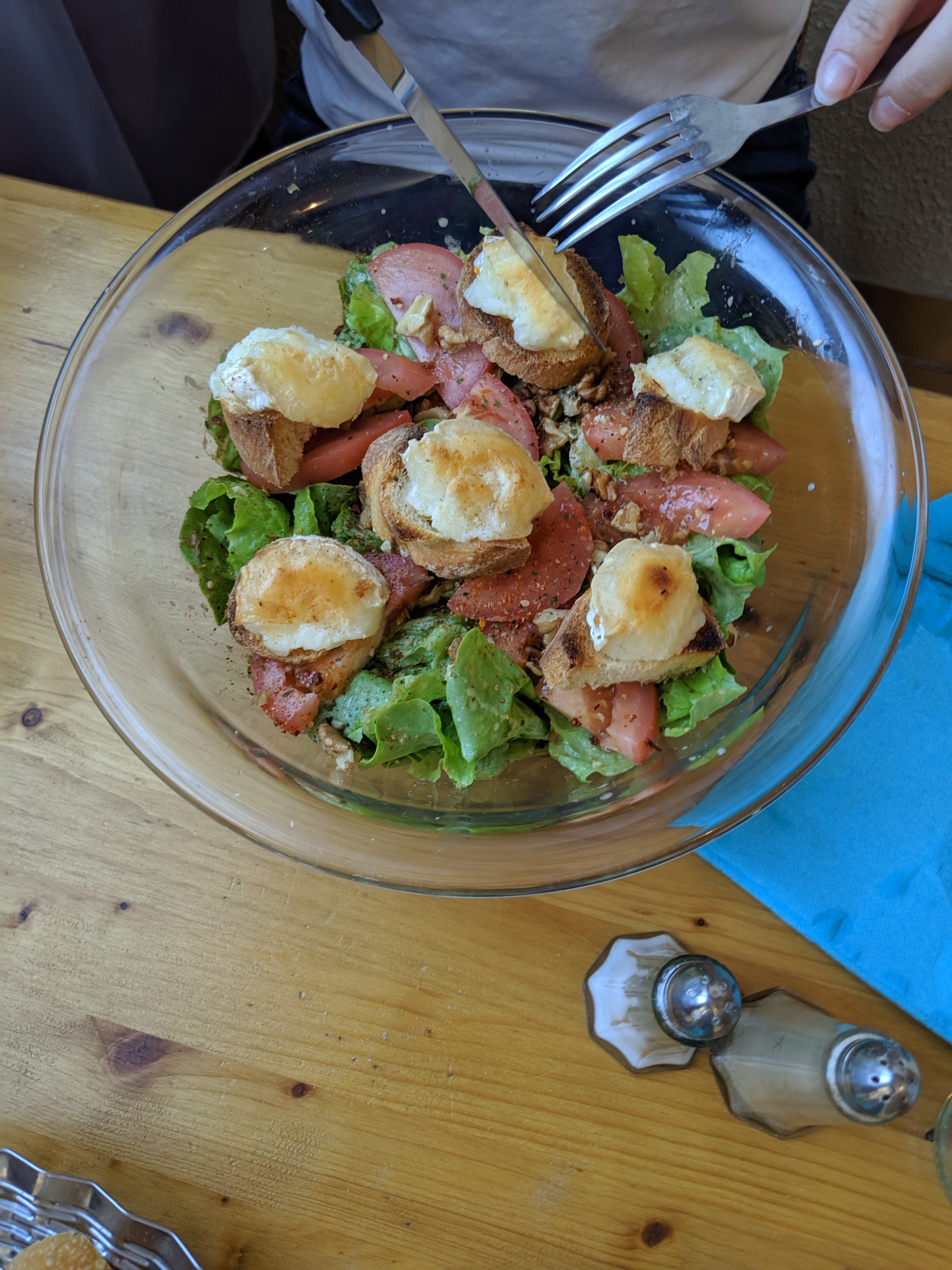 Le personnel vraiment sympathique, parlait très bien anglais, pouvait répondre aux besoins alimentaires et nous a préparé un plat spécial sans gluten. Un steak haché incroyable et de délicieuses frites. Les salades sont grandes et savoureuses aussi.