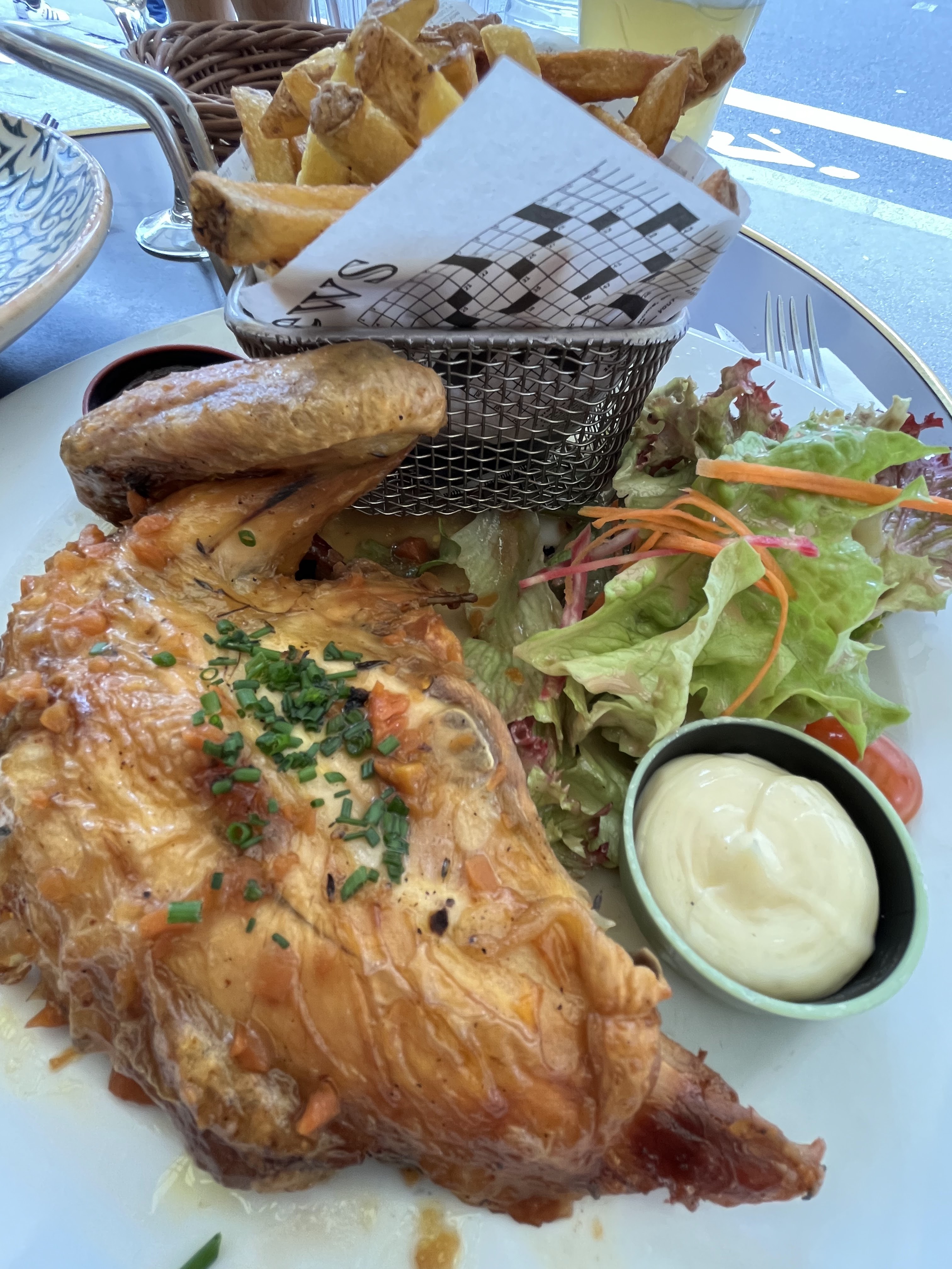 Cuisse de poulet avec purée sans saveur particulière et juste tiède. Fish and chips assez quelconque. Pas mauvais mais vraiment rien d'exceptionnel. Service rapide et très agréable par contre !