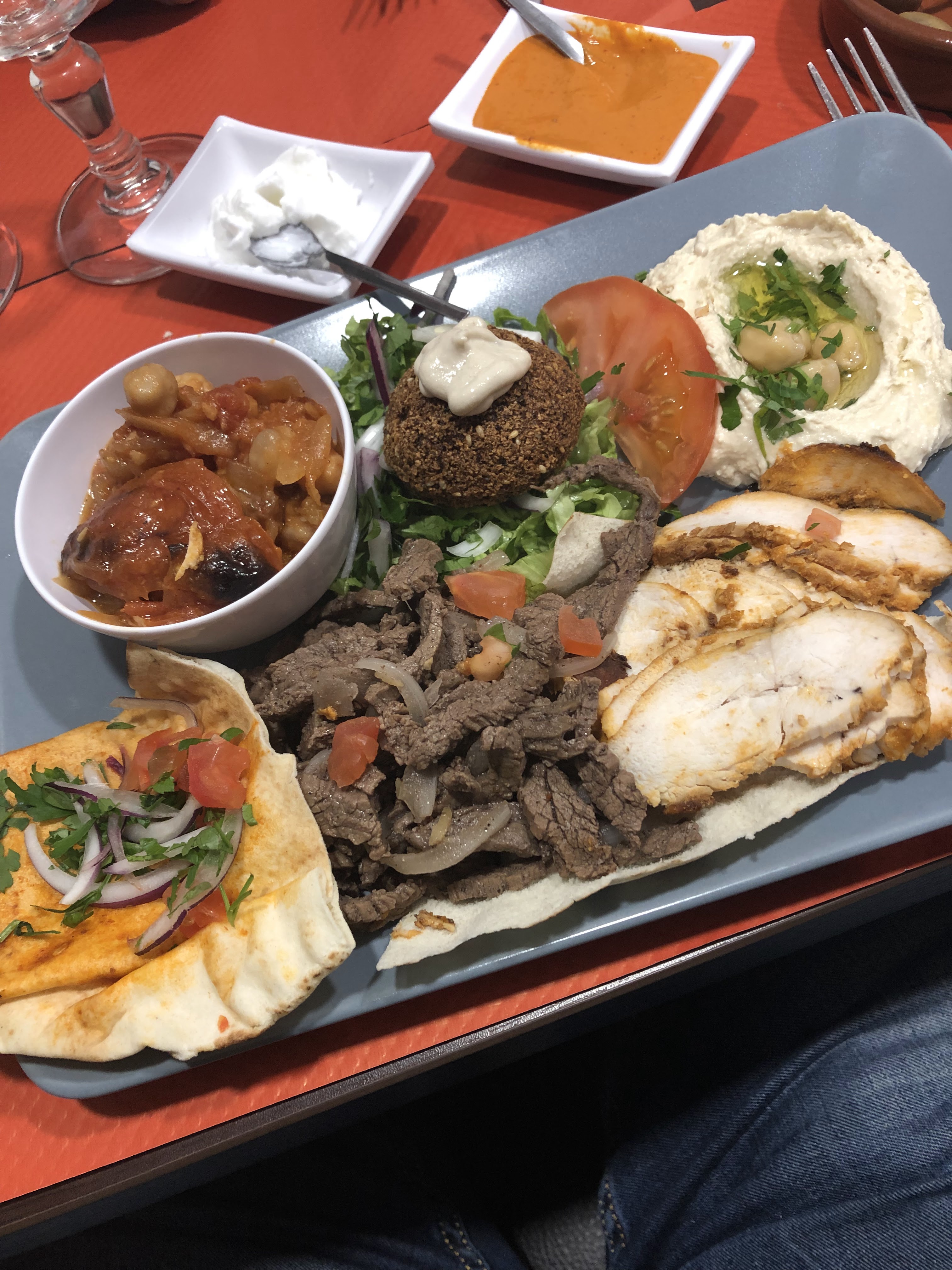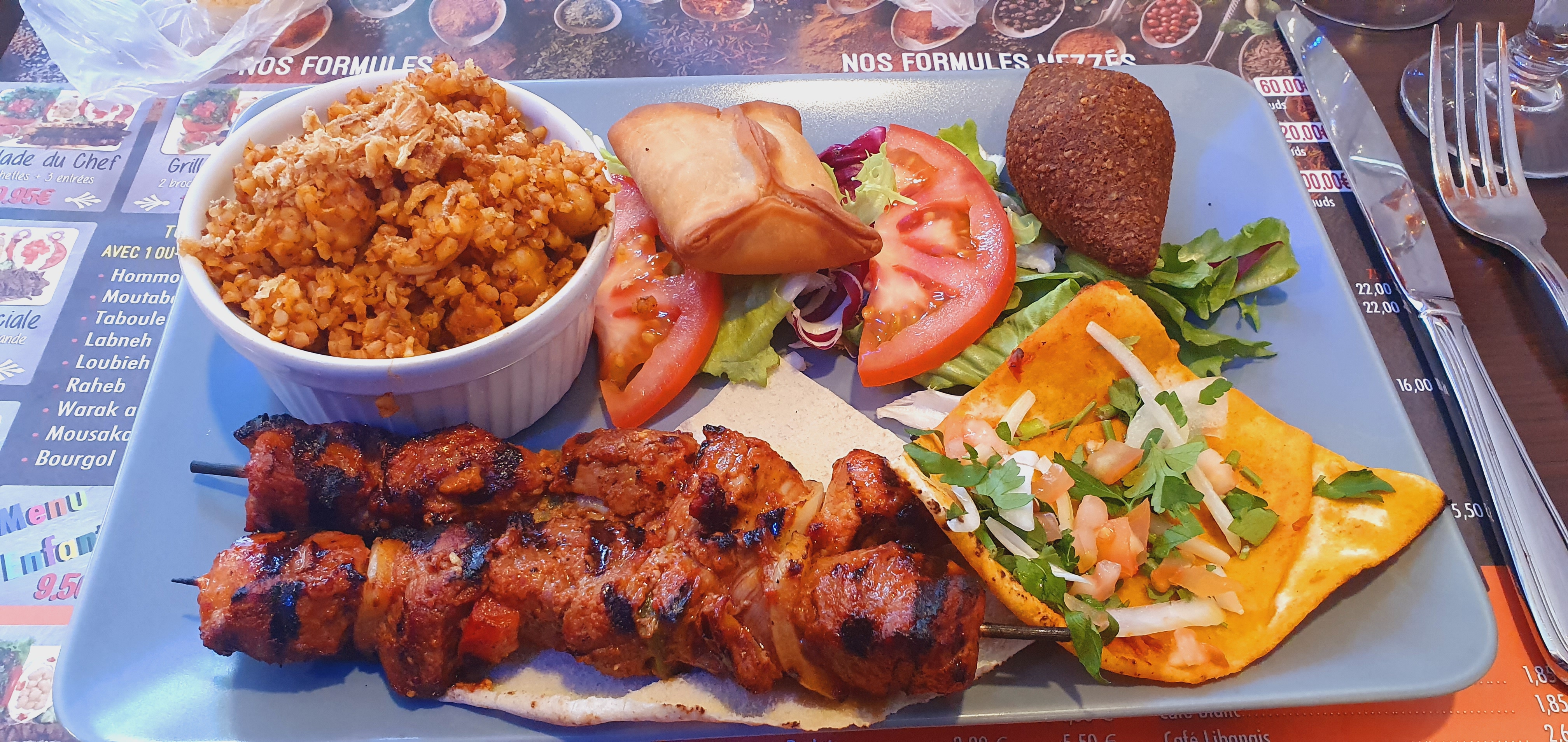 Les plats classiquement proposés dans les restaurants libanais, c'est bon et rapide. Efficace pour une pause déjeuner en somme. Ambiance musicale orientale +