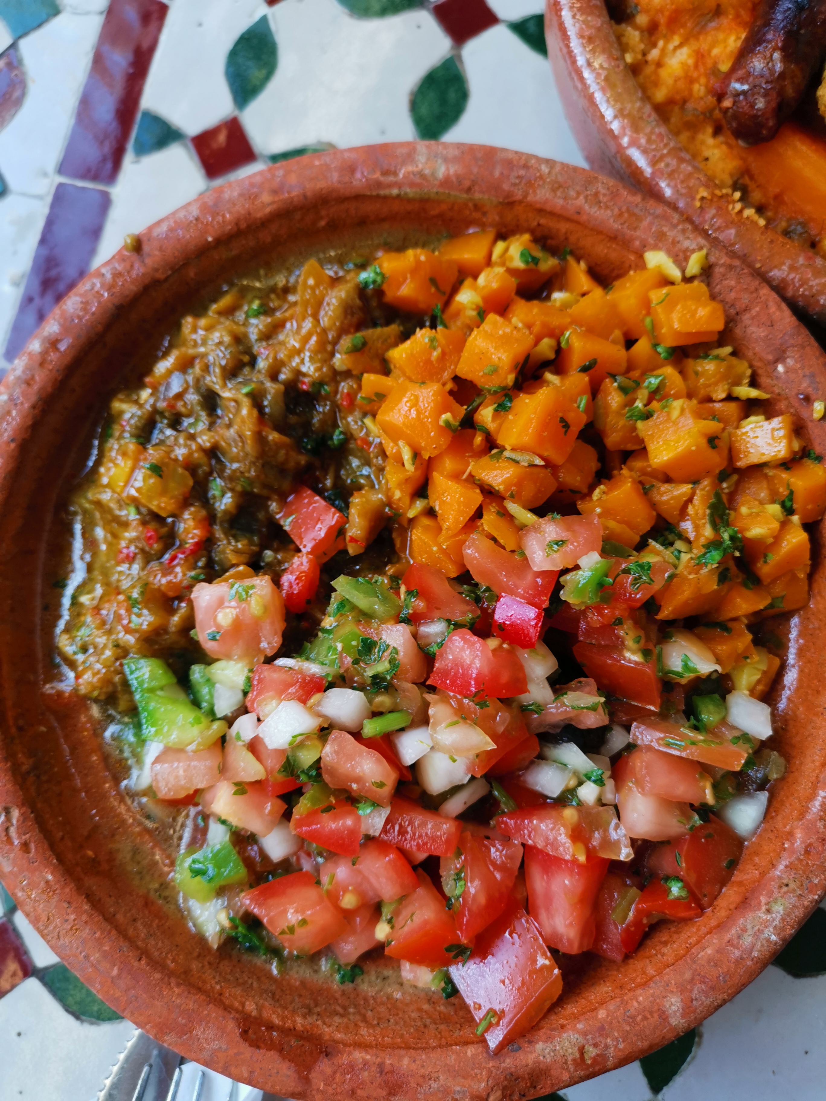 Endroit savoureux, nous avons essayé l'aubergine, la salade de tomates et le tajine d'agneau, très sympa