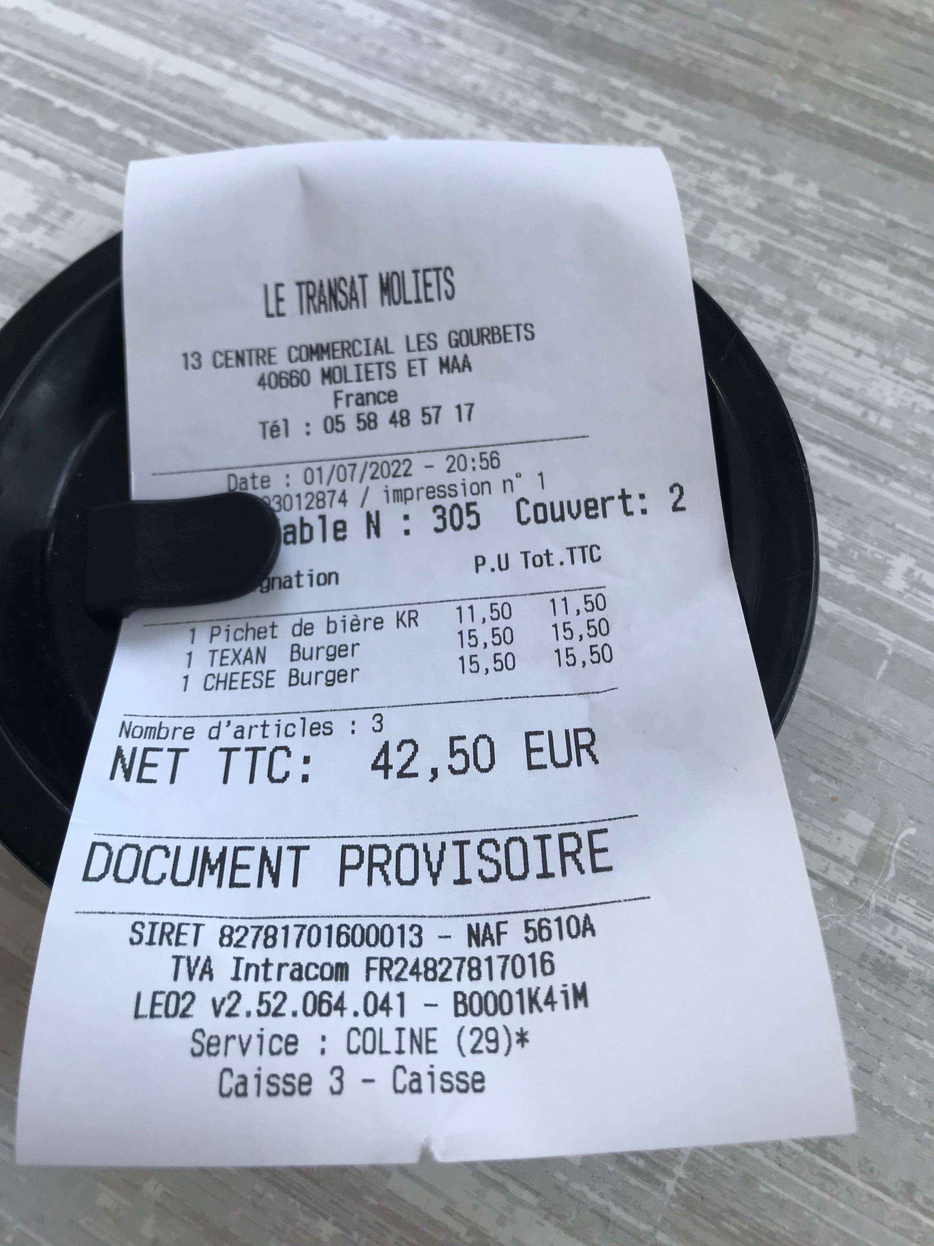Surtout fuyez ! N'y allez pas. C'est plus une arnaque qu'un repas ! Pizza mauvaise et très mal garnie (mieux vaut en prendre une dans un quelconquesupermarché), entrecôte un morceau de gras impossible à couper, steak tartare immangeable. Une bouffe immonde ! Vous y ajoutez un bruit plus que délirant suite à la terrasse couverte.....Le chien du propriétaire en ballade à travers les tables,.... bref, restaurant Le Transat à Moliets à fuir au plus vite ! 😡😡😡😡😡😡😡 Vous y serez très très très déçus ! Le pire que nous avons fait.
