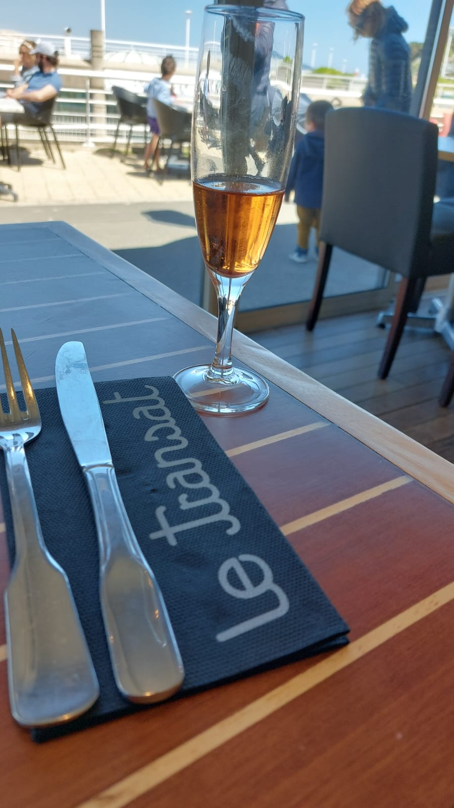 Nous sommes allés au transat par le biais de la réceptionniste de notre hôtel. Nous avions demandé un BON restaurant , visiblement on n'a pas compris notre demande ! En lisant les commentaires et les notes , je ne comprends pas comment on peut être satisfait en sortant de ce restaurant !! Peut être du faite que nous même avons travaillé en restauration . L'accueil est correct , on nous installe jusqu'ici tout va bien . Le patron ( me semble t'il ) vient prendre notre commande. 2 apéritifs, 2 entrées à la carte ( avec 2 verres de vin Blanc ) , 2 plats à la carte ( nous voulions 2 verres de vin rouge avec mais le choix n'était pas fait ) le patron nous dit ce n'est pas grave on verra tout à l'heure, on a le temps c'est les vacances ! Très bien . L'apéritif arrive . Rien à dire . En même temps rien de transcendant. 2 kir breton . Les entrées nous sont servis par une serveuse ! Le fois gras . Il est correct mais vraiment rien d'extraordinaire . Chère a la carte pour la quantité dans l'assiette. Le saumon gravlax, je le cherche toujours. Nous sommes obligés de demander nos verres de vin Blanc qui étaient oubliés ( rien de bien méchant ça peut arriver ) !! Les plats ... T bonne de veau servi avec des pommes de terre grenaille. Rien d'extraordinaire Je peux le faire moi même Un mi cuit de thon . Une horreur !! Le thon ultra salé , une impression de boire la tasse à chaque bouché. L'accompagnement n'en parlons pas une pauvre julienne de légumes sortit du congélateur , aucun goût aucune saveur même pas cuisiné un minimum ! Certes les assiettes étaient vide mais au vue du prix il faut mieux ! Le patron nous débarrasse , nous demande si le repas c'est bien passé. On lui dit gentiment qu'il ce serait mieux passé avec notre verre de vin rouge . Sa réponse BAA fallait me le dire . (Visiblement la réflexion n'a pas plus ) De UNE , c'est plus simple de demander quand les serveurs sont disponibles De DEUX ce n'est pas très commerçant . ( petit conseil quand on prend une commande c'est bien de demandé si on veut une eau plate ou gazeuse , c'est les bases 🙂 on attend toujours l'eau également 🙄 On nous donne la carte des desserts . On attend toujours nos café gourmand 😅 Personne est venu prendre notre commande. La serveuse a parlé avec une cliente juste derrière nous pendant un petit moment ( ce qui est très bien , cela permet de fidéliser sa clientèle ) , malgré que son discourt me faisait sourire !!pendant ce temps là , personne n'Est venu prendre nos desserts . Au bout de 20 minutes nous avons décidé de partir . La note 98euros , ça fait vraiment mal !!!!!! Cette impression d'avoir été prise pour une pigeonne !
