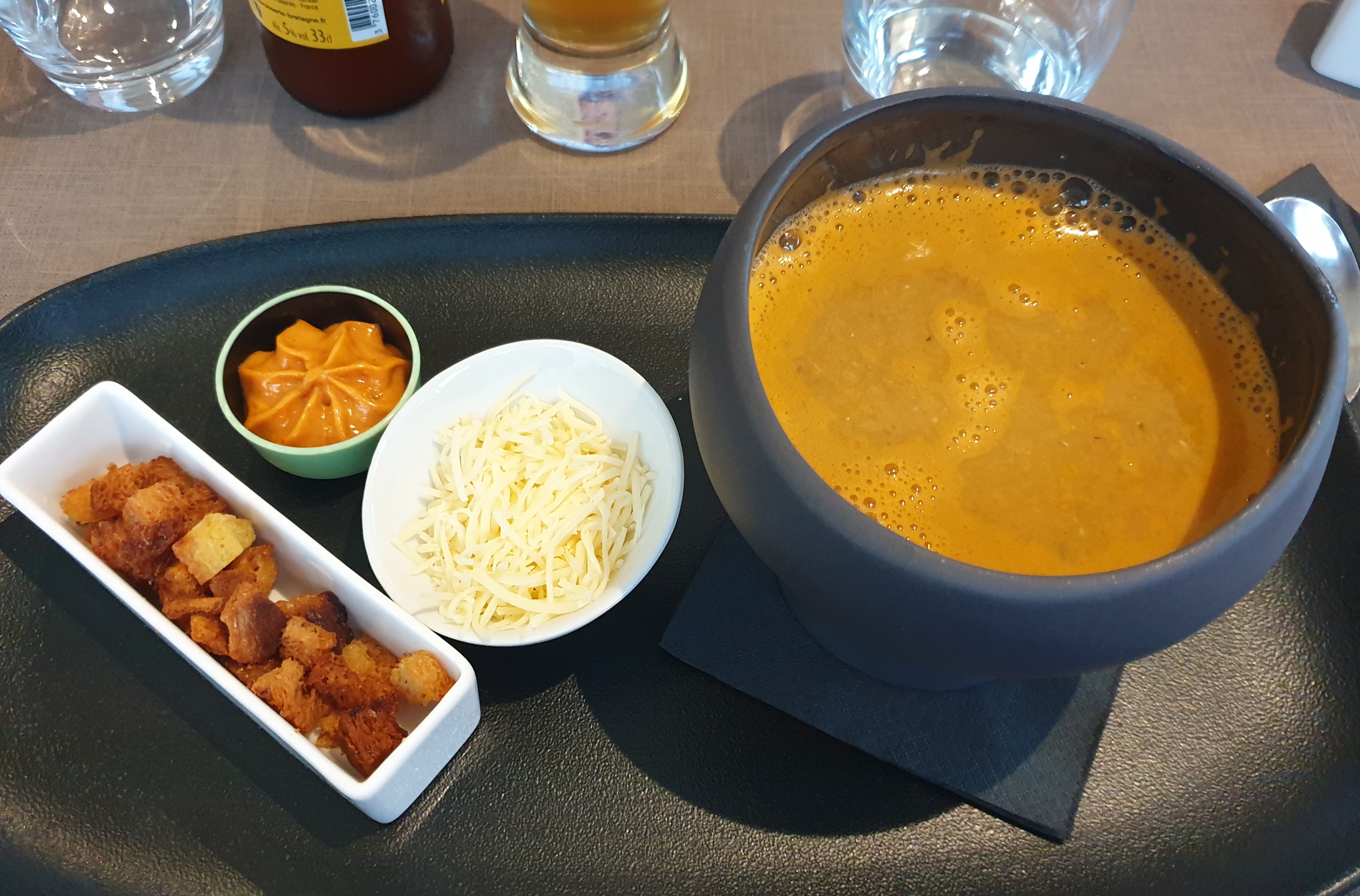 Personnel fort sympatique et surtout conciliant! Petite pause post-plage estivale pour un Irish Coffee perfect 👌🏻 Pour le repas, je reviendrai.. promis!
