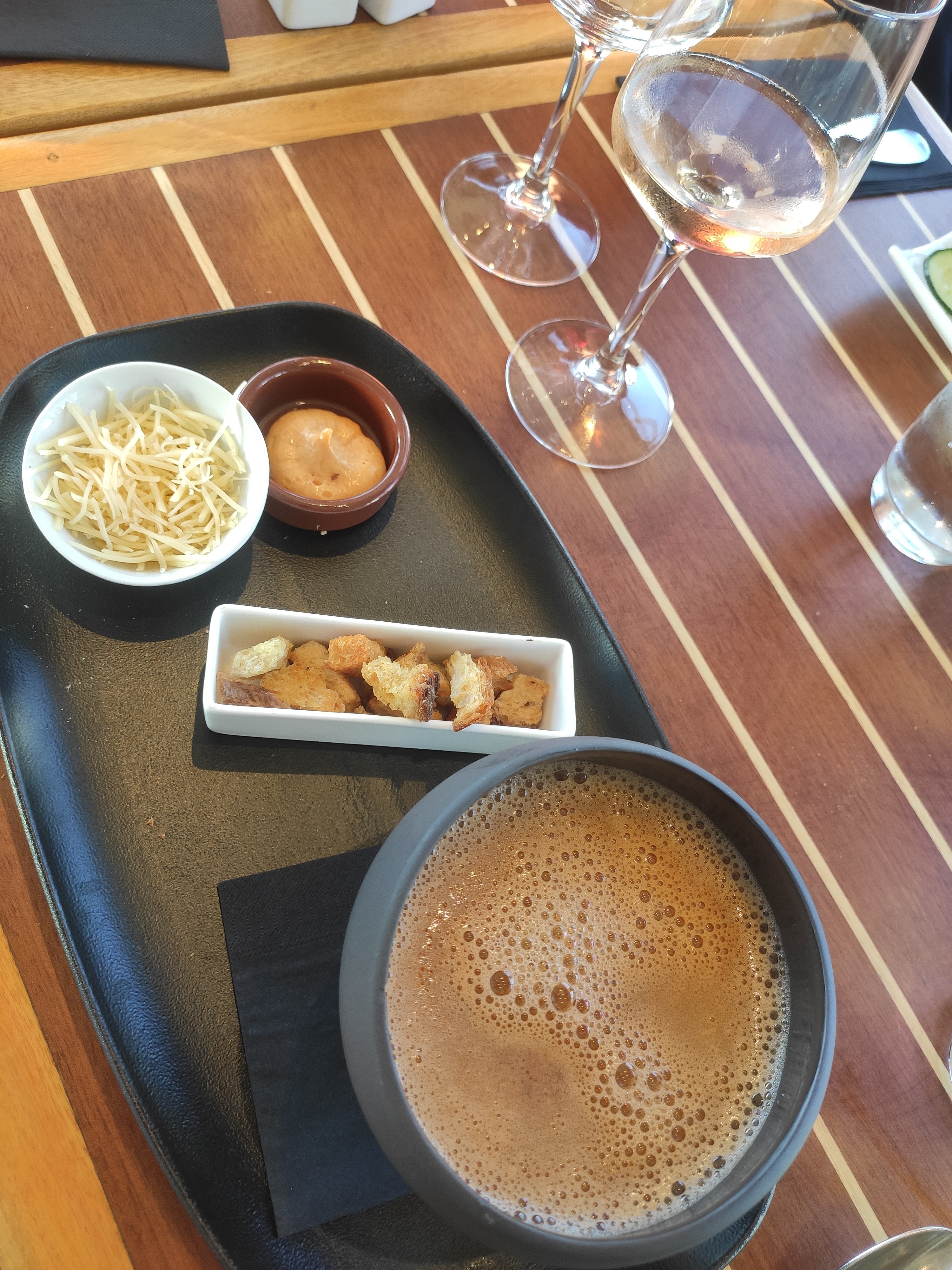 Le restaurant est bien situé, les plats sont bons, terrasse en bord de plage ,pour ma part j'avais pris une soupe de poisson,filet de colin avec croûte de chorizo et un cheesecake au agrume avec mousse coco. Le tout était excellent. Le seul souci étant le temps d'attente entre chaque plat.Pour le repas complet il nous a fallu en tout une heure et demi.(Sa va que nous sommes en vacances). Bref je recommande quand même.
