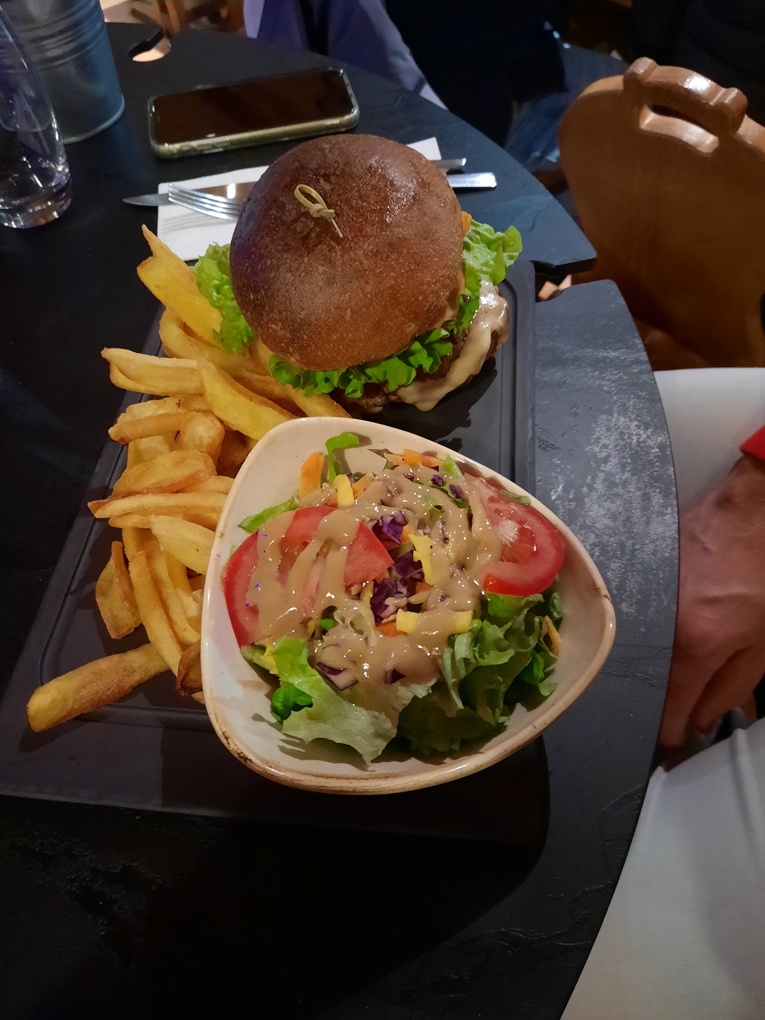 BOF !!! Nous avons pris : une pizza au magret (4 fines tranches perdu sur une pizza à la pate inexistante certe immense mais très grasse et pas vraiment goûteuse )donc pas terminée comme sur les tables d'à côté ...Deux burgers frites qui auraient pu être mieux on na pas trop retrouvé le gout du fromage (Abondance )de plus les frites étaient moyennes C'est dommage car l'établissement est bien situé