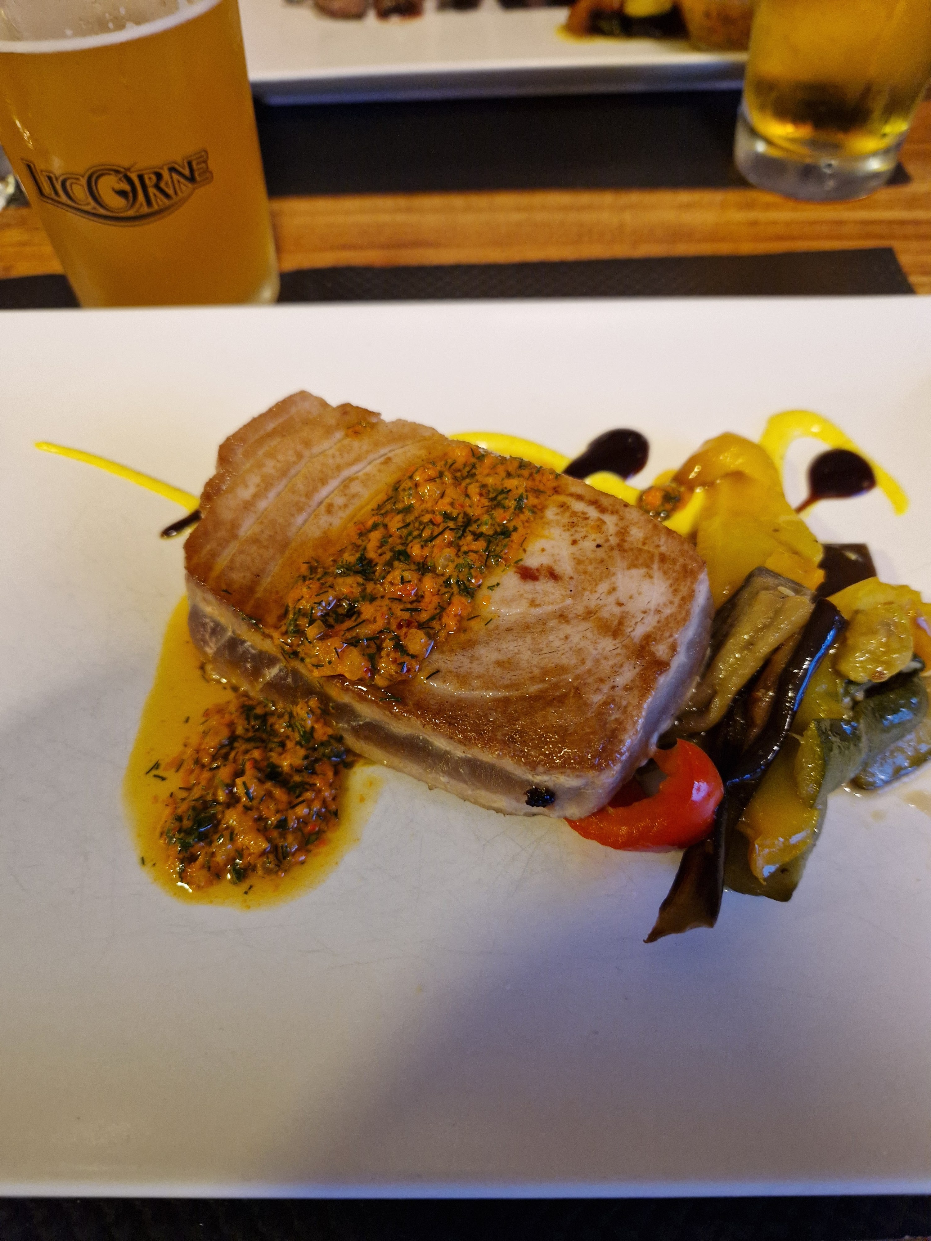 Que dire... une bonne embiance, une serveuse qui connaît son travail, une viande et du poisson délicieux un fond de musique très relaxant. Franchement à y aller. Je n est rien à y redire mise à part parfait merci