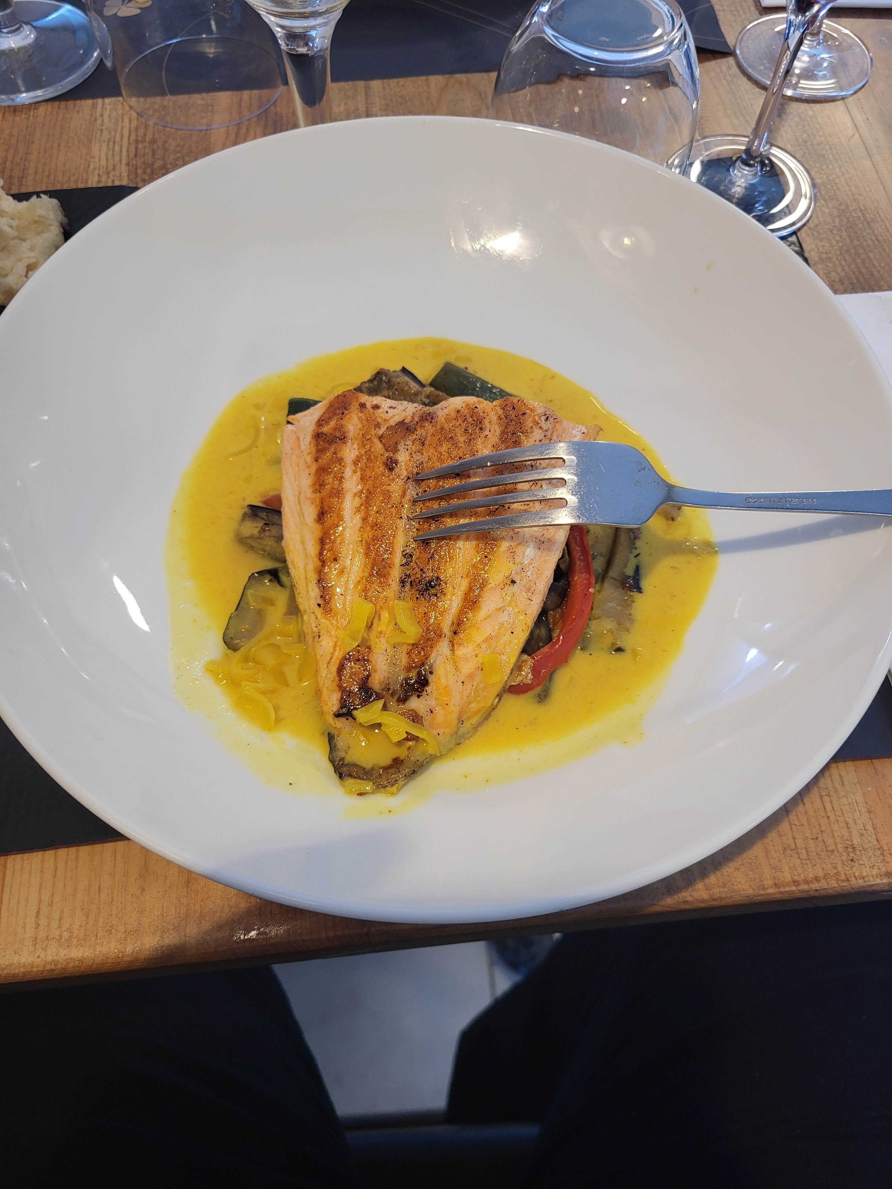 Nous avons déjeuné hier et nous avons mangé un carpaccio de saumon excellent. La décoration est très sympa. L accueil du responsable et la serveuse est top. C est une adresse qui vaut le détour. Rapidité et qualité des plats en font une adresse à garder