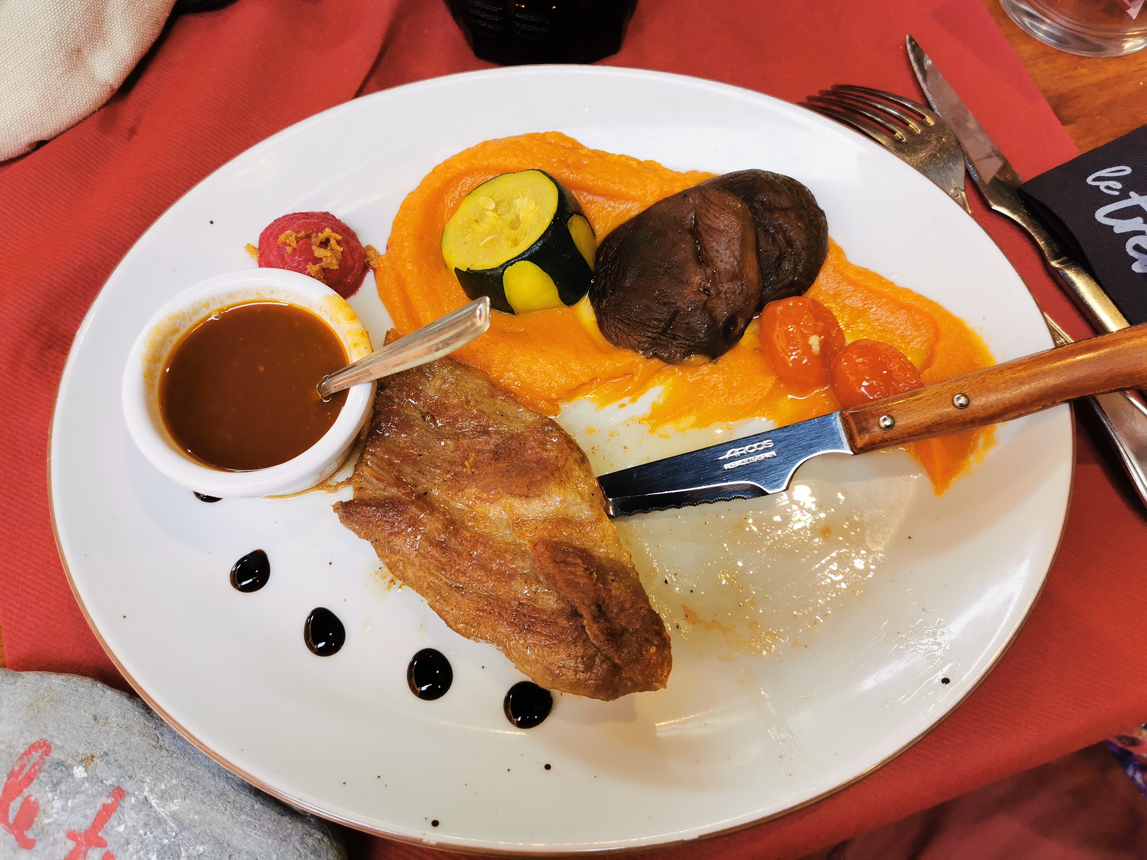 Juste parfait,ce n'est pas un piège à touriste ! 👌 Très bon accueil, terrasse à l'ombre, un vrai cuisinier aux fourneaux et des tarifs au juste prix.