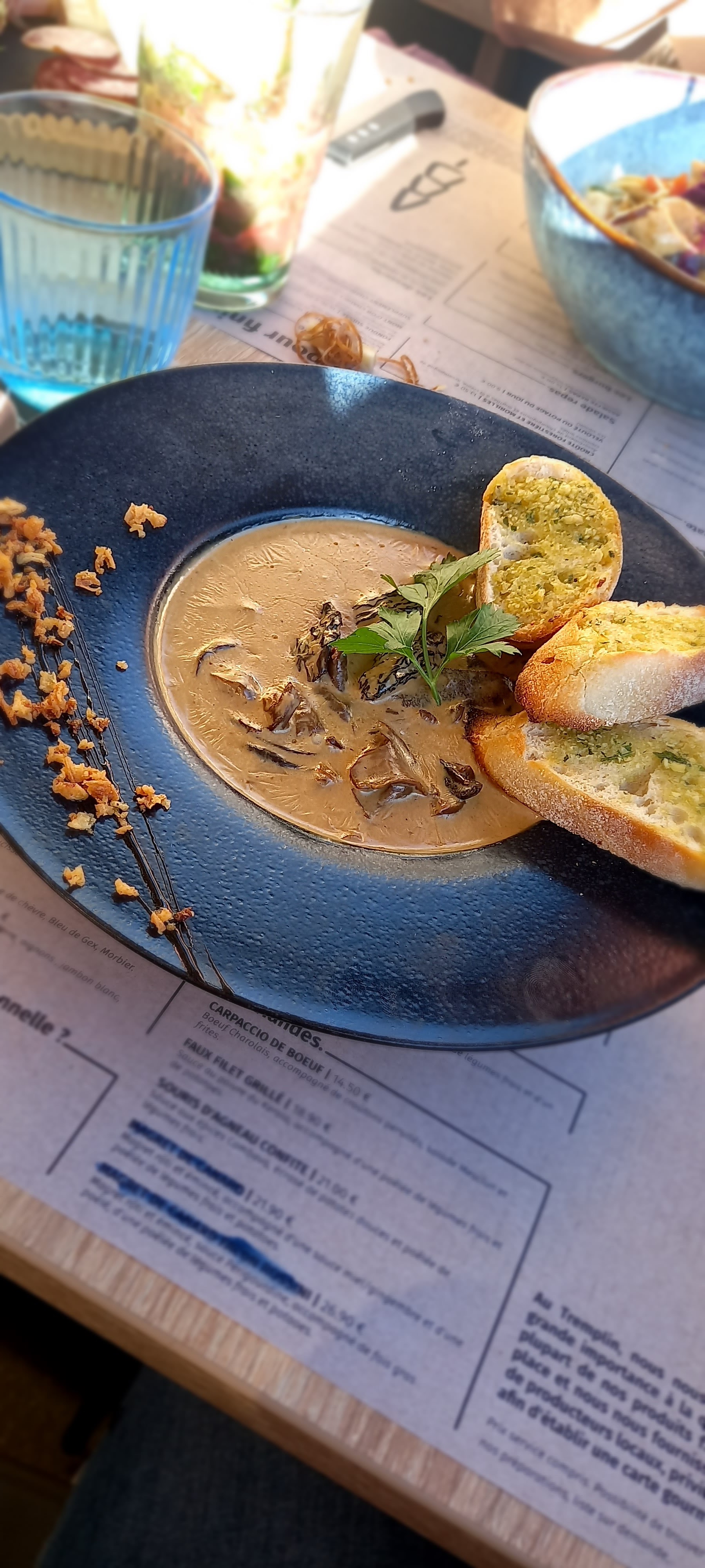 Ambiance agréable avec des serveurs sympas. Cassolette de poulet forestier en gratin, un délice . Avec un verre de chardonnay 😋 . Le faux filet 🥩🍽️chimichurri, très tendre. Avec un verre de côté de boeuf 👍. La brioche perdue🍞 pas perdue pour mes papilles 😉. Entrez dans cet établissement sans soucis 🍽️