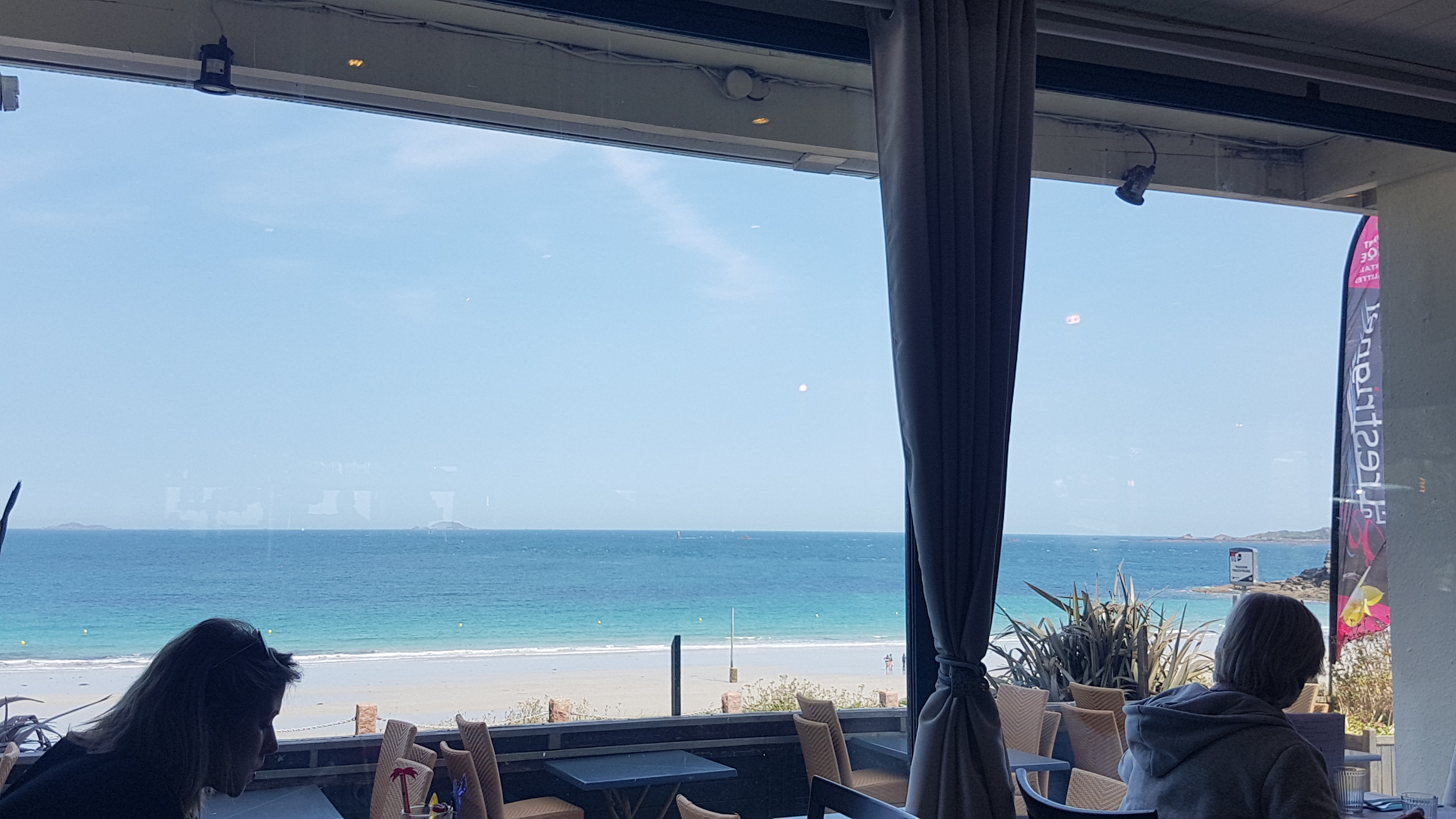 Très bon expérience dans ce restaurant ! Le cadre est idyllique avec une vue superbe sur la plage de Trestignel et la côte au granite rose. L'équipe est au petit soin avec ses clients, fait la conversation et rigole avec eux, au top ! Un verre de vin nous a été servie non frais et celui-ci a été immédiatement changé par le serveur sans en faire la demande et en nous présentant ses excuses. Il n'y a rien à dire sur la cuisine qui sait allier les saveurs du monde avec des mets plus locaux. (Duo de hareng et sébaste avec une sauce curry onctueuse ou encore gâteau de manioc et coco servi avec sa crème anglaise) Et tout cela pour un prix plus que raisonnable par rapport à la qualité des produits proposés sachant qu'ils proviennent de filières locales et si possible bio. Effectivement, il n'y a pas de moule actuellement car leur producteur partenaire n'a pas encore commencé la récolte, cela dans le but de proposer un produit de qualité et dans une démarche écologique. Je recommande ce restaurant à tout épicurien qui souhaite passer un bon moment.
