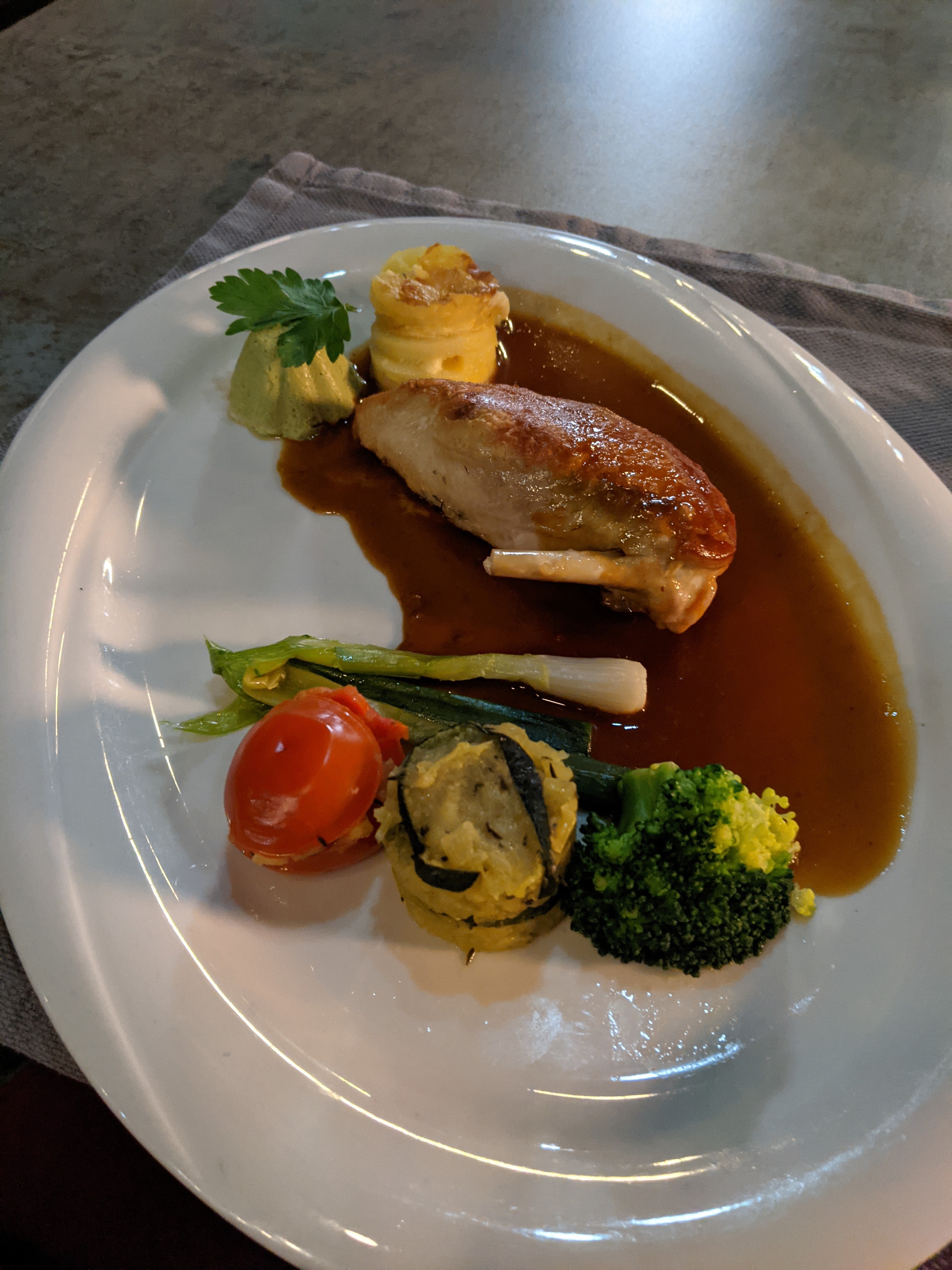 Repas excellent, quantité gastronomique mais suffisante pour un repas du soir. l ambiance est raffinée et un peu guindé.