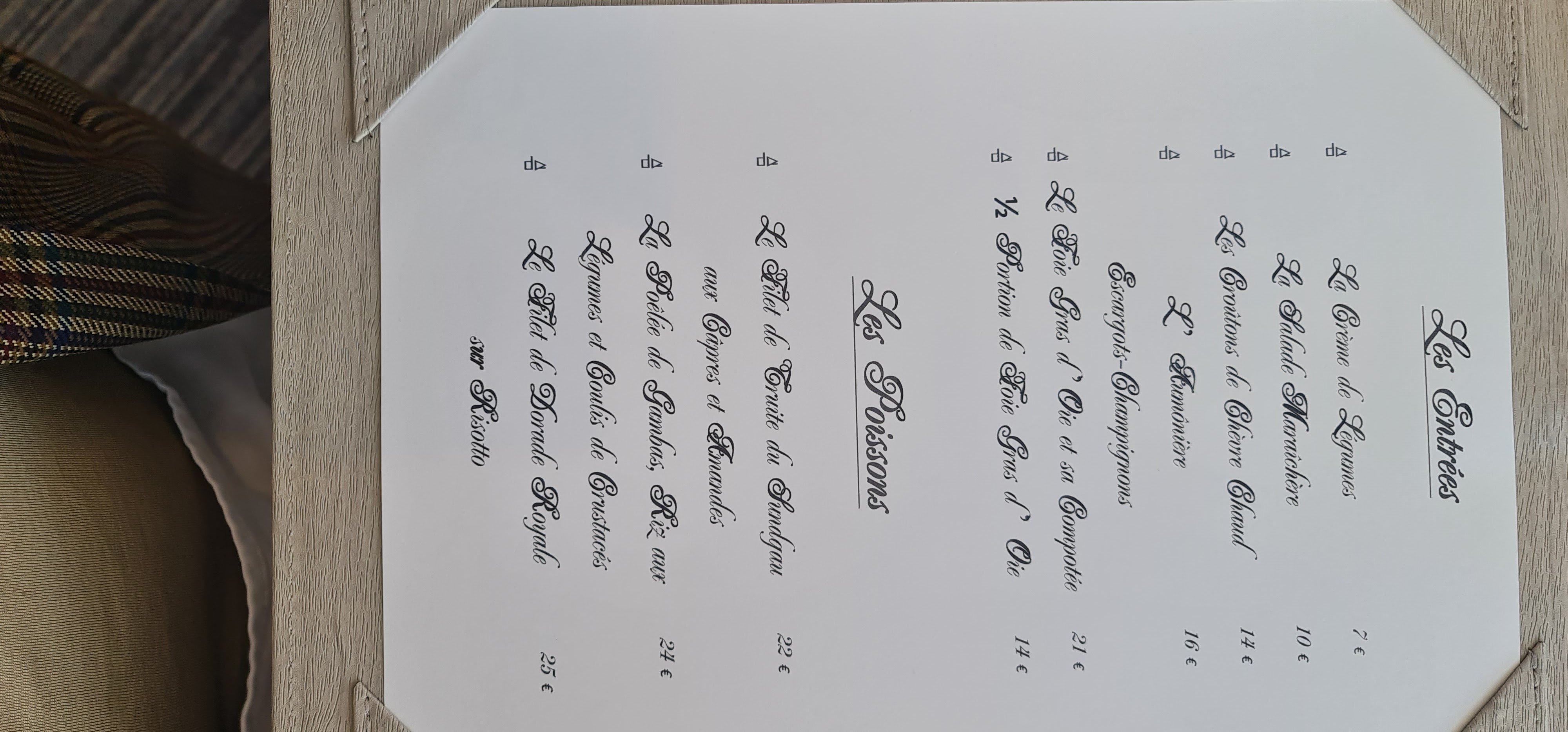 Très Bon repas affaire à 23€ le midi et le soir du mardi au jeudi.