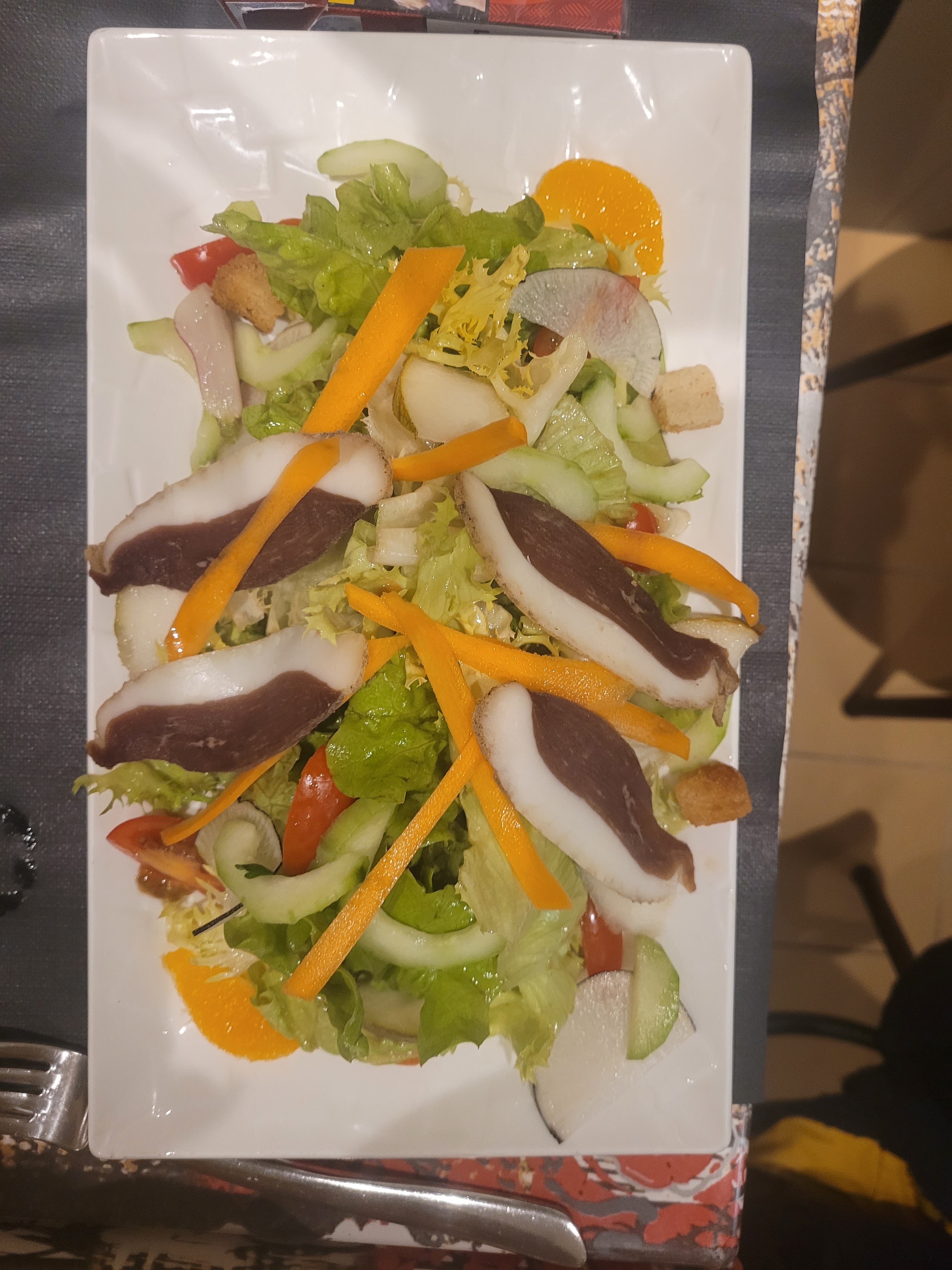 Belle présentation produits frais fait maison très bon rapport qualité prix. Le plus les petits croûtons de la salade de magret une tuerie