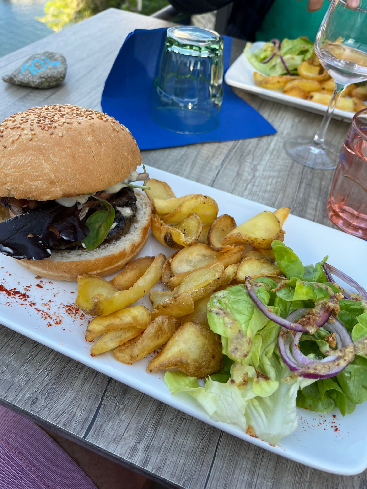 Très bon resto, dans un super cadre malgré la pluie. Personnel accueillant et gentil. Les viandes, poisson et burger sont bon. Je recommande ce restaurant.