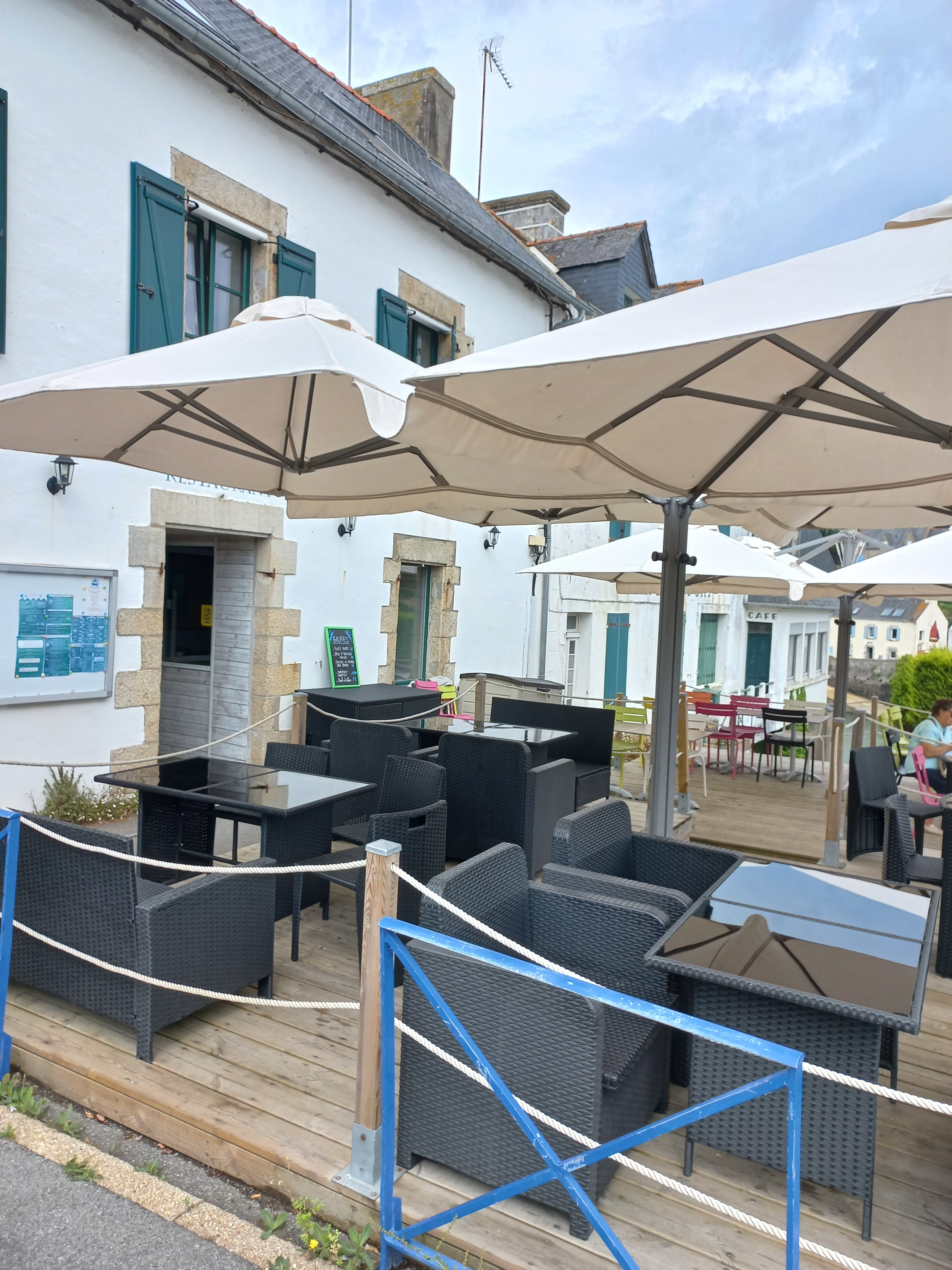 catégorie surfaite réduite à Bar /Brasserie uniquement, et NON restaurant. Heureuse exploitation de la plaisante vue de la terrasse arrière sur l'anse de Doelan. Déjeuner en août en famille. Accueil trop appuyé pour les habitués réguliers du lieu. Prix disproportionnés pour cet établissement bar.