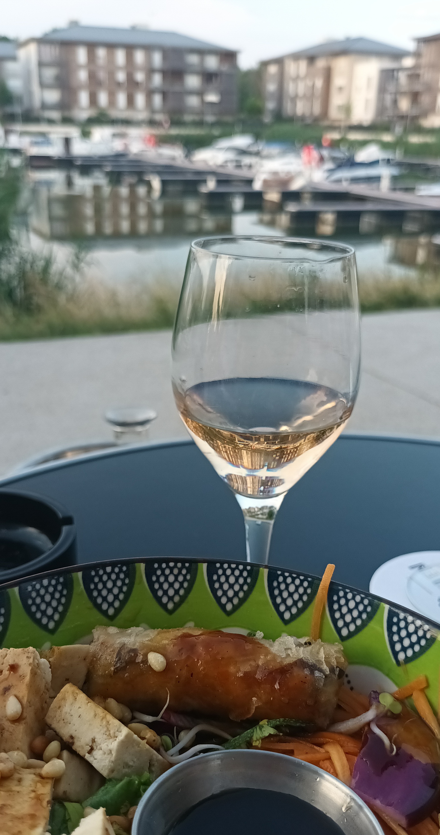 Au bord de la marina, j’ai d’abord été surpris par la mise en place non prévue pour une réservation de 8 personnes en extérieur, puis agréablement surpris par la cuisine proposée. Un point d’attention sur le copeaux de parmesan sur les pennes à la crème de truffes, un râpé serait plus raffiné, car au final on y touche pas.