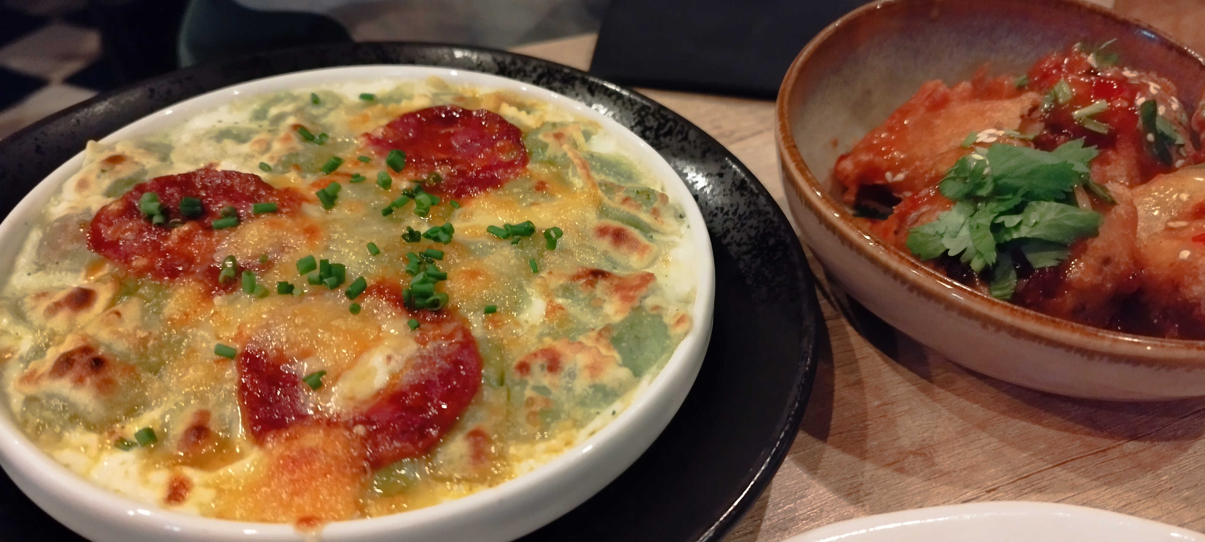 Très bien reçu, une petite cassolette Raviole/Chorizo à tomber par terre ! Une très bonne adresse !